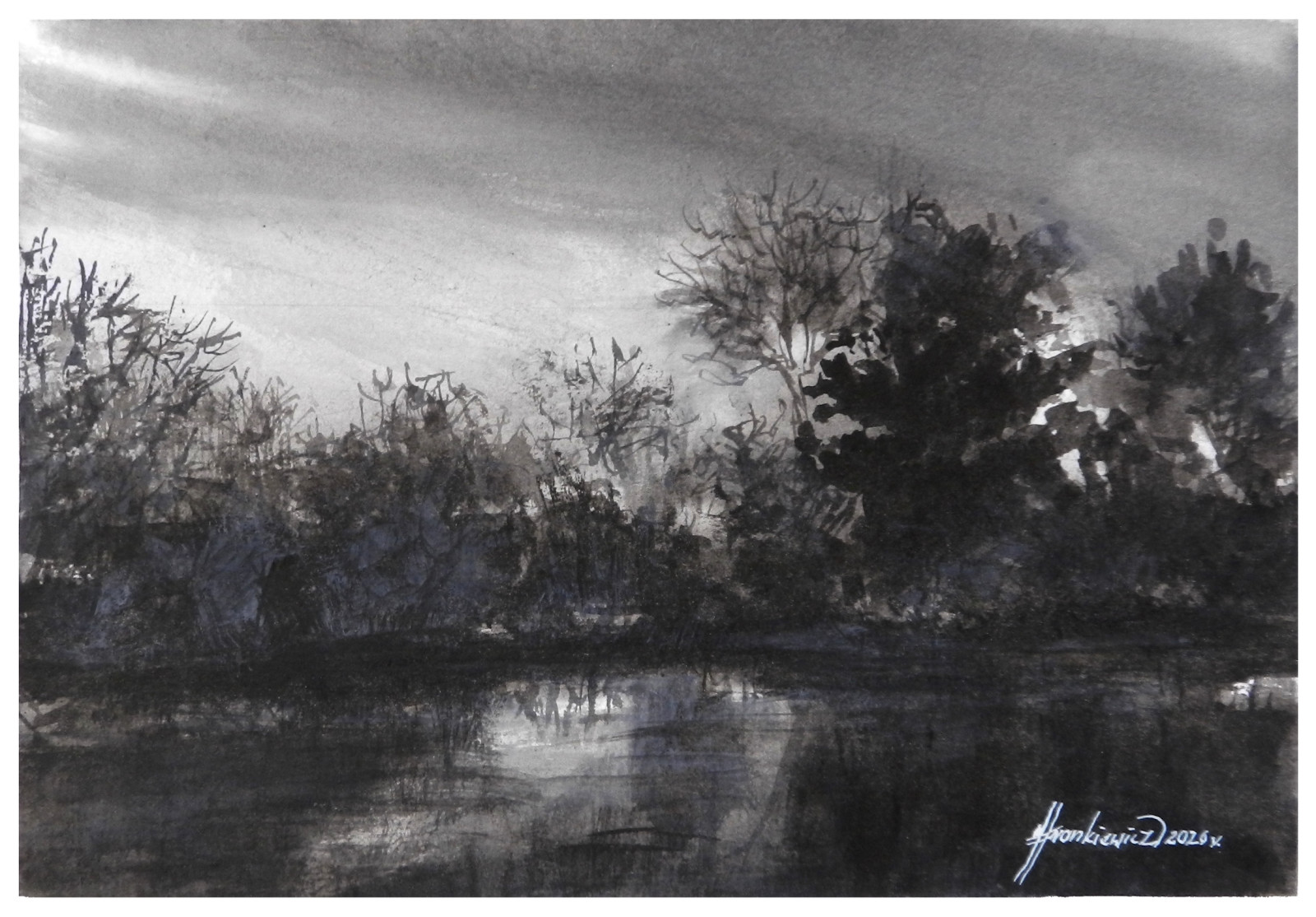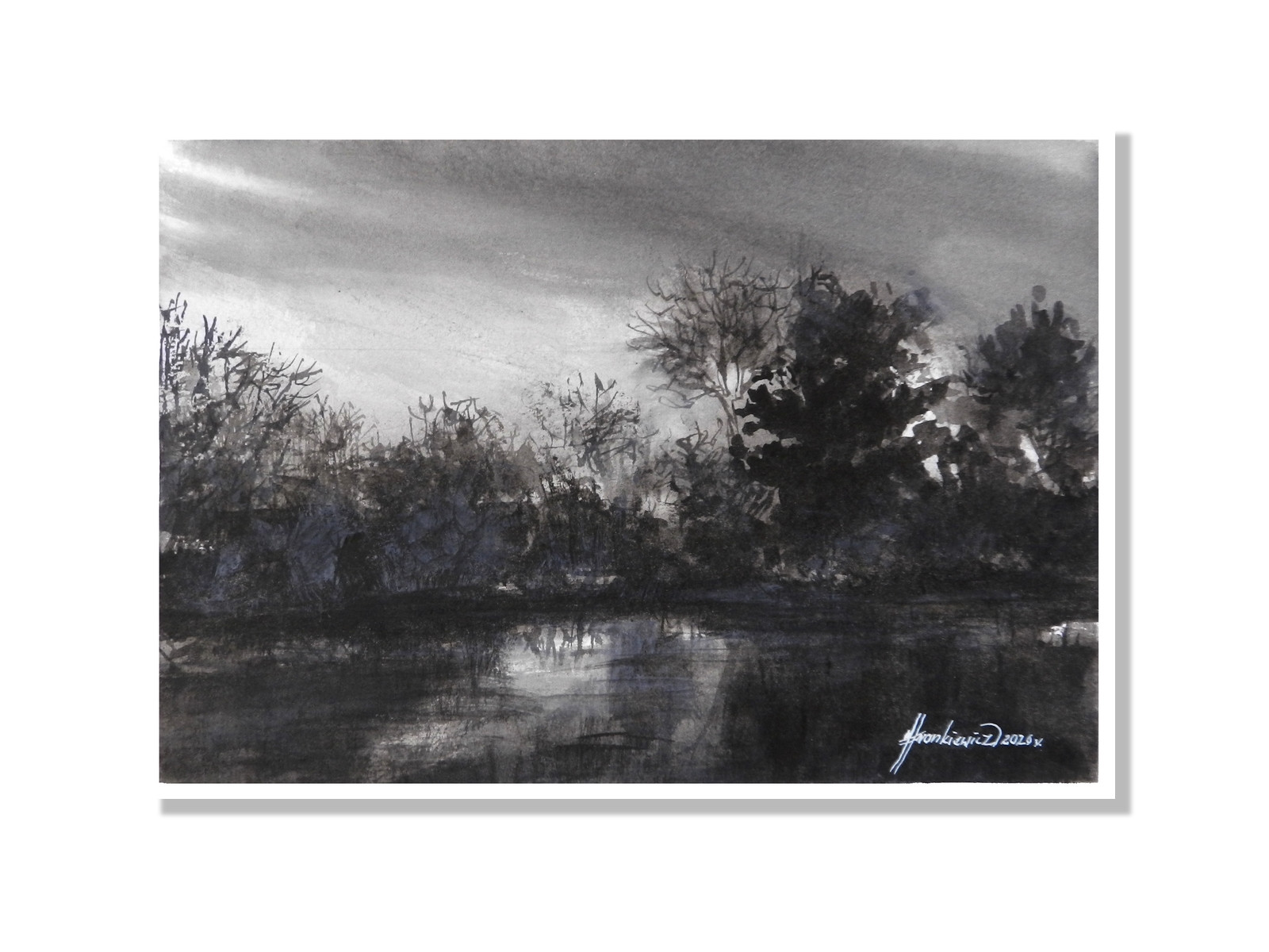 Księżycowa poświata - monochromatyczna akwarela A4
