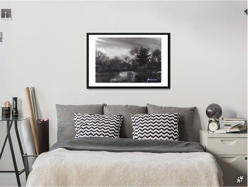 ,,Księżycowa poświata ,,– monochromatyczna akwarela wykonana na papierze artystycznym o grubości 300 g/m2. Format A4 (21x29,7 cm). Obraz malowany tradycyjną techniką akwareli w eterycznej czarno białej tonacji kolorystycznej.Praca posiada autorski, naturalny margines (ok. 0,5 cm) ze śladami procesu tworzenia, podkreślający jej unikatowy charakter. Oryginalna praca,sygnowana przez artystkę na licu oraz na odwrocie, zabezpieczona werniksem. Idealna do nowoczesnych, surowych wnętrz. Wysyłka w bezpiecznym, kartonowym opakowaniu, gwarantującym nienaruszony stan papieru.