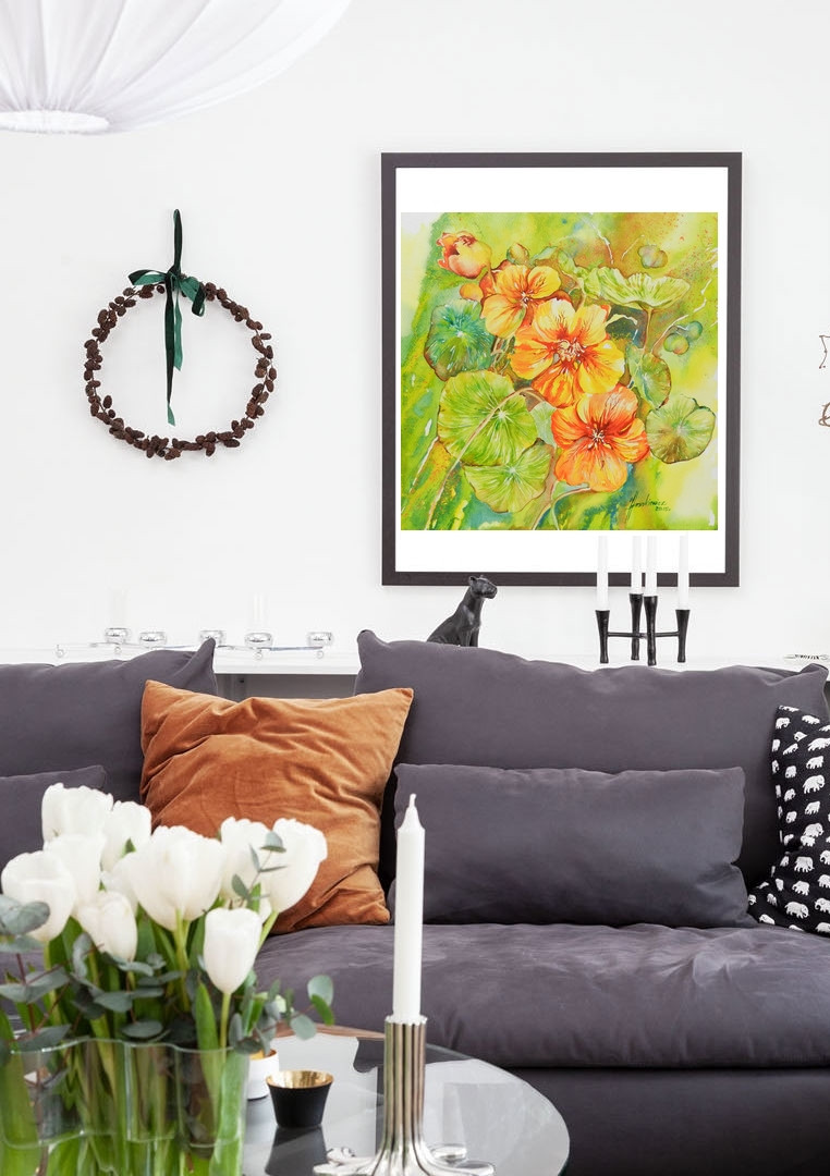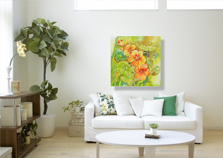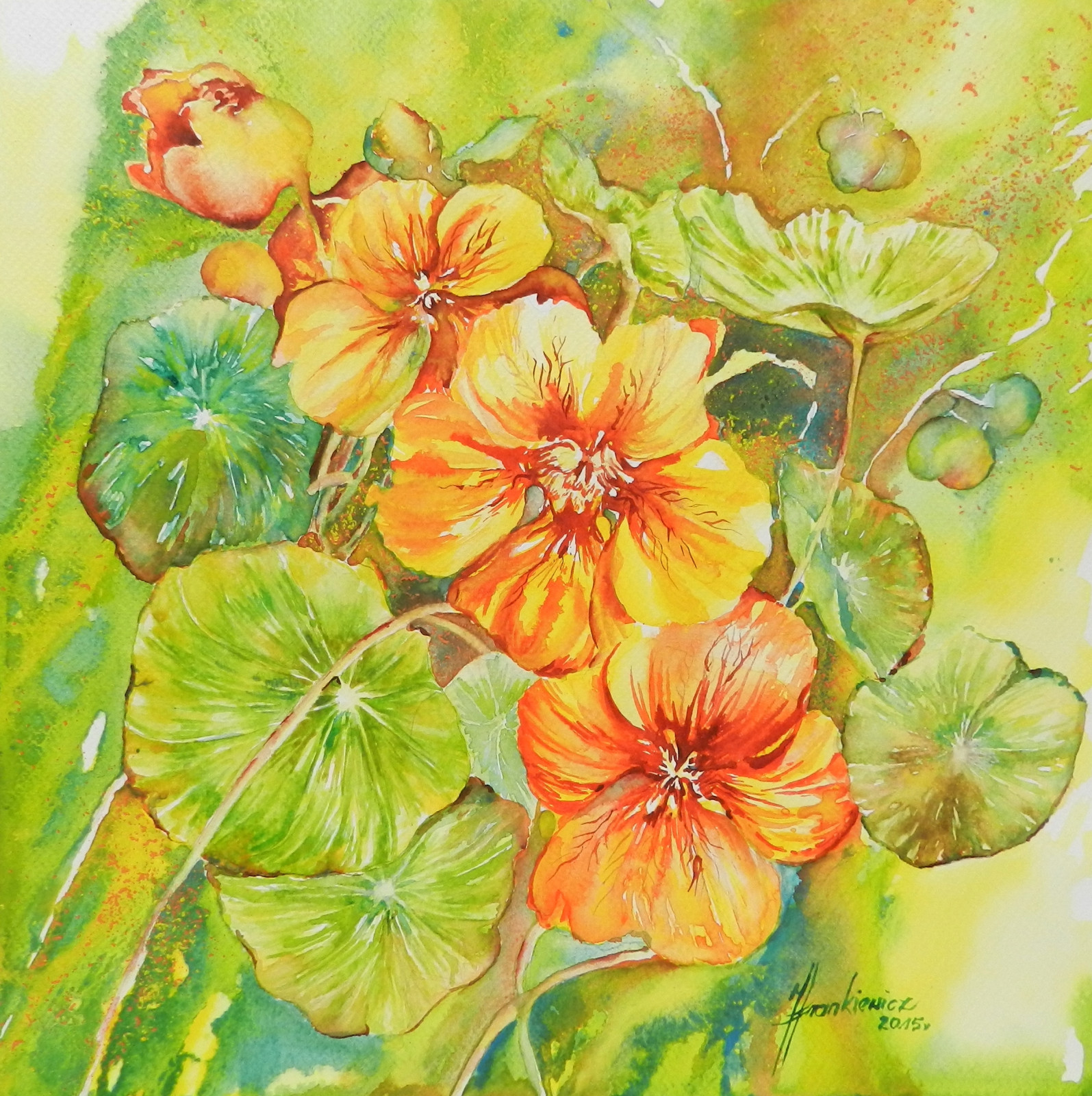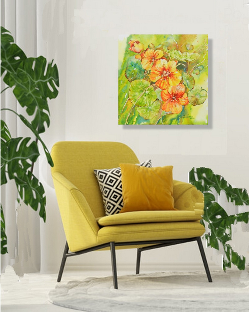 Obraz wykonany tradycyjną techniką akwareli na profesjonalnym, białym papierze artystycznym 300 g.