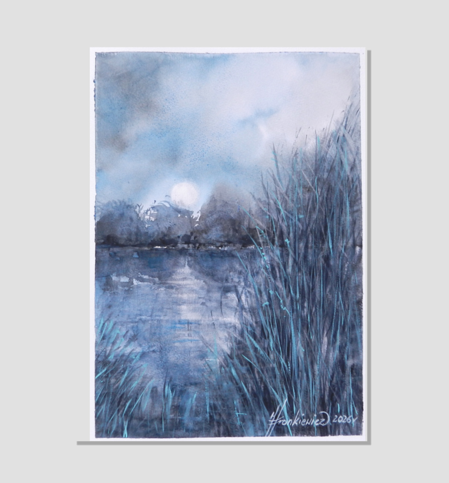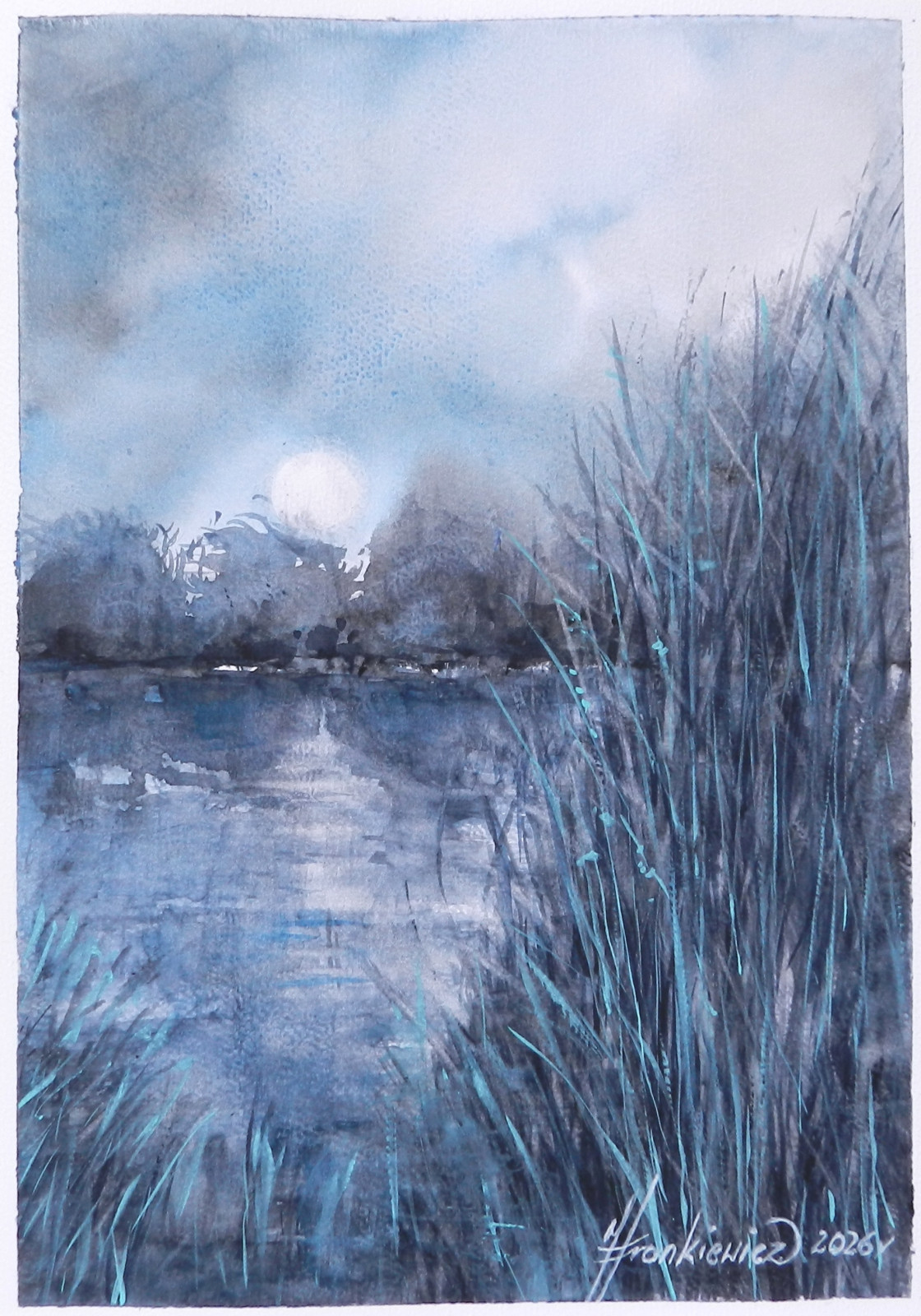 Niebieski- monochromatyczna akwarela A4