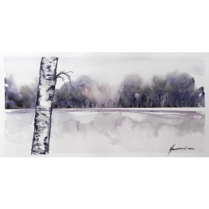 Abstrakcyjny pejzaż malowany farbami akwarelowymi na papierze artystycznym o gramaturze 300g/m2 .