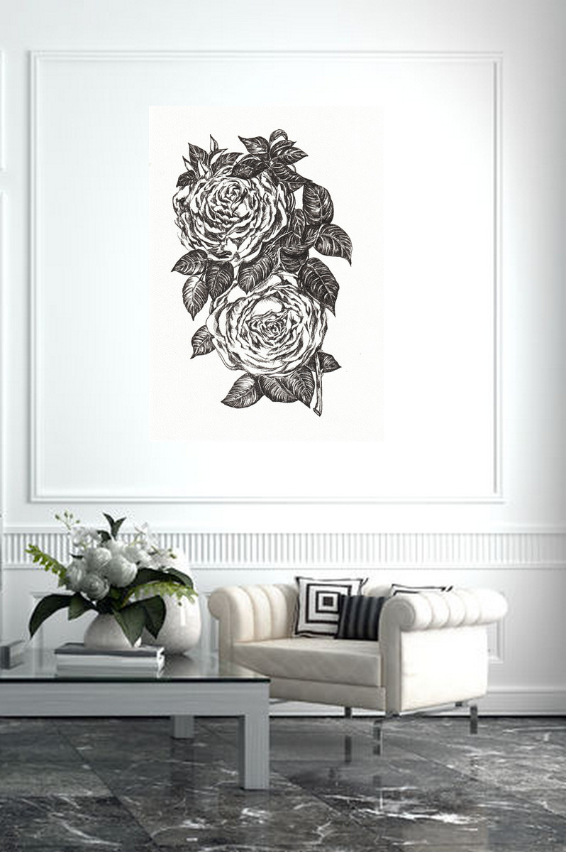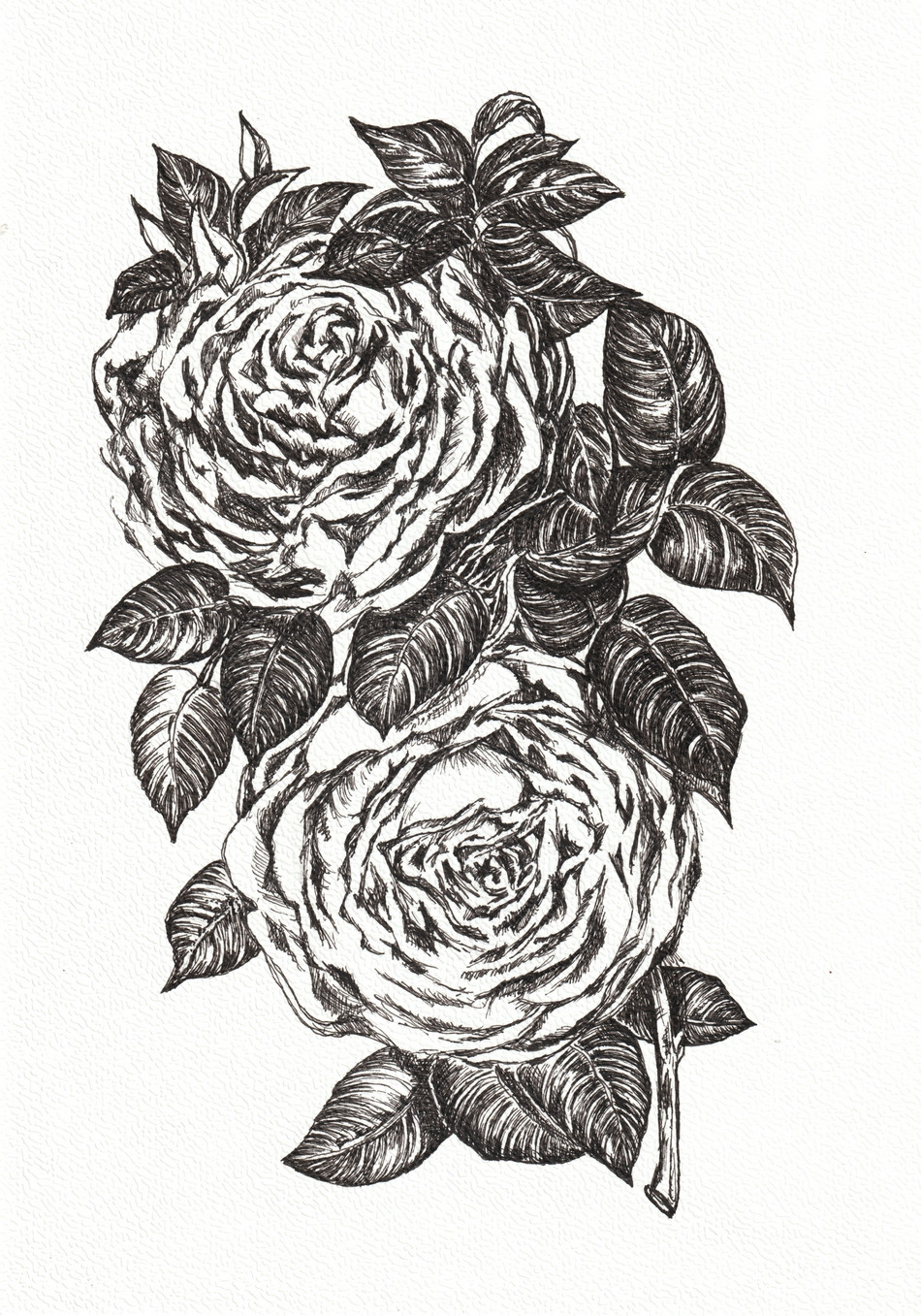 ,, Aromatyczne popołudnie ,, to nostalgiczny rysunek przedstawiający kwitnący kwiat róży .Obraz wykonany tradycyjną techniką tuszu na profesjonalnym , białym papierze artystycznym ..