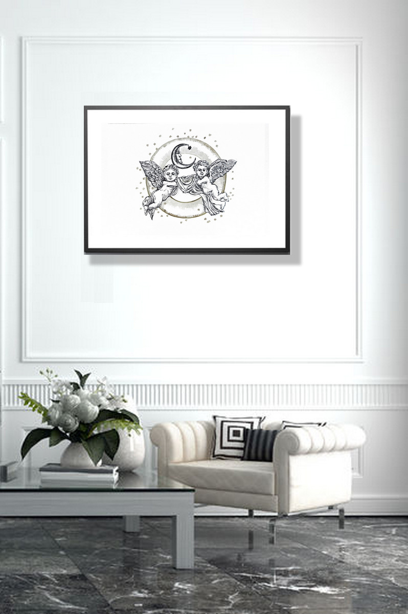 ,, Cupido Amorki ,, - rysunek , wykonany tradycyjną techniką tuszu na profesjonalnym , białym papierze artystycznym ..