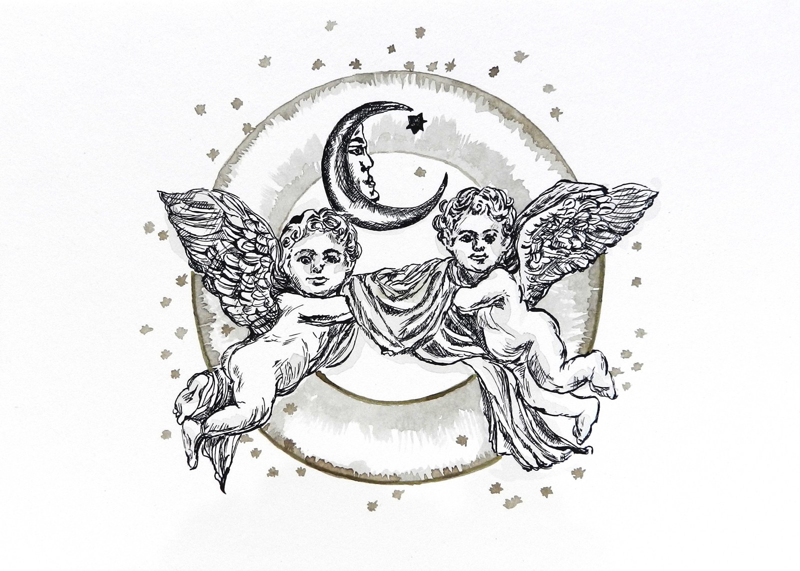 Cupido Amorki- rysunek tuszem A4