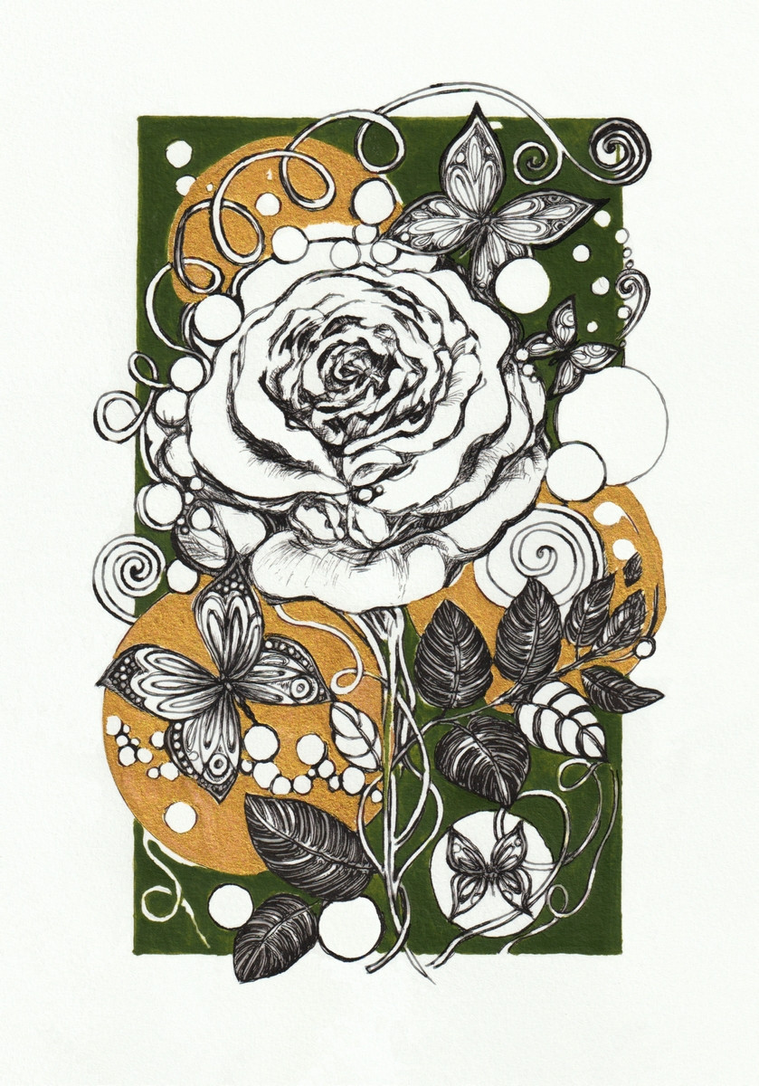 Rysunek w stylu klasycznej elegancji . Wysoka jakość zastosowanych podczas tworzenia materiałów artystycznych , oraz naturalna kolorystyka podbijają walory artystyczne pracy.