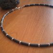 Naszyjnik poprzeplatany oponkami 4 mm ze srebra 925. Całość na mocnym nośniku z linki jubilerskiej amerykańskiej 7 strunowej.