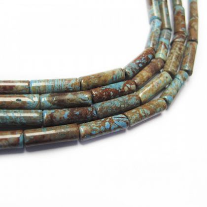 Naszyjnik męski, wykonany z wałeczków pięknego Tygrysiego Oka oraz Jaspisu Cesarskiego 13 mm x 4 mm, poprzeplatanego oponkami ze srebra 925. Jaspis o unikatowej barwie brązowo - niebieskiej, idealnie komponuje się ze szlachetną brązową barwą Tygrysiego Oka.