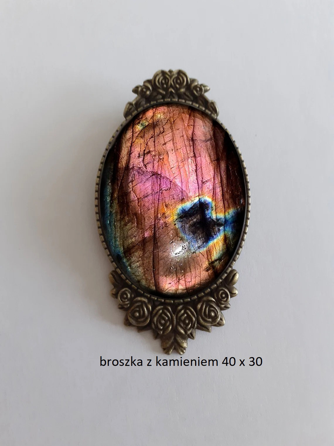 Broszka vintage w stylu carskiej Rosji z Turmalinem czarnym wielkości 30x40 mm