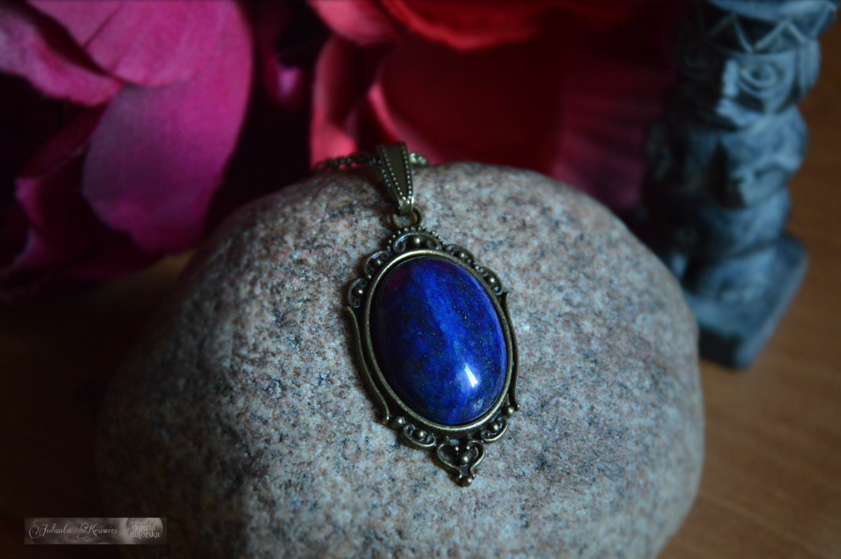 Medalion vintage w stylu carskiej Rosji z Lapis lazuli wielkości 30x40 mm