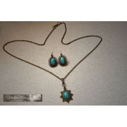 Komplet biżuterii autorskiej z jesiennej kolekcji w stylu vintage, wykonane z antycznego złota.