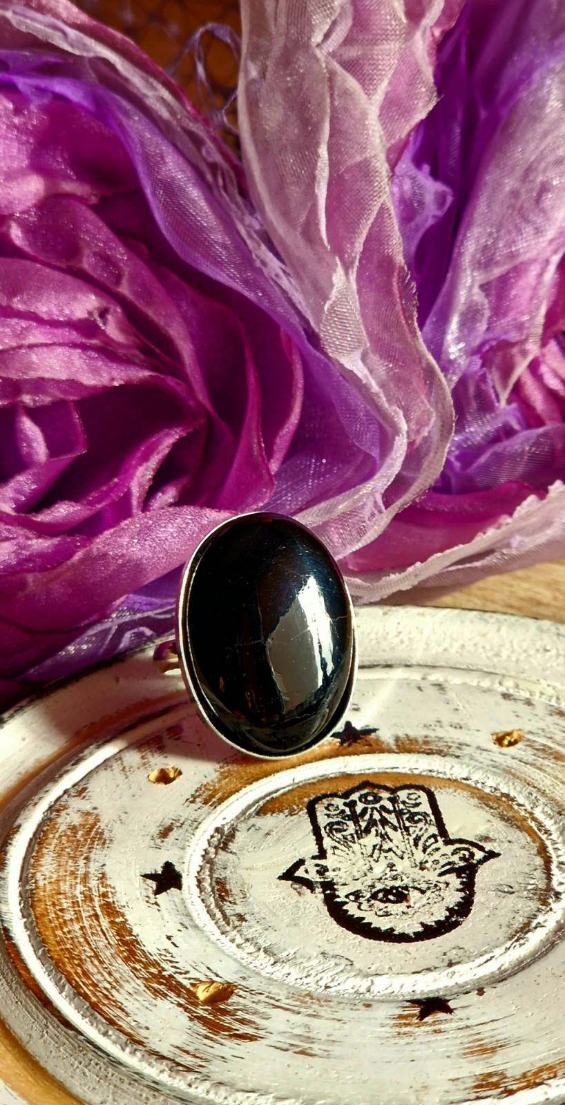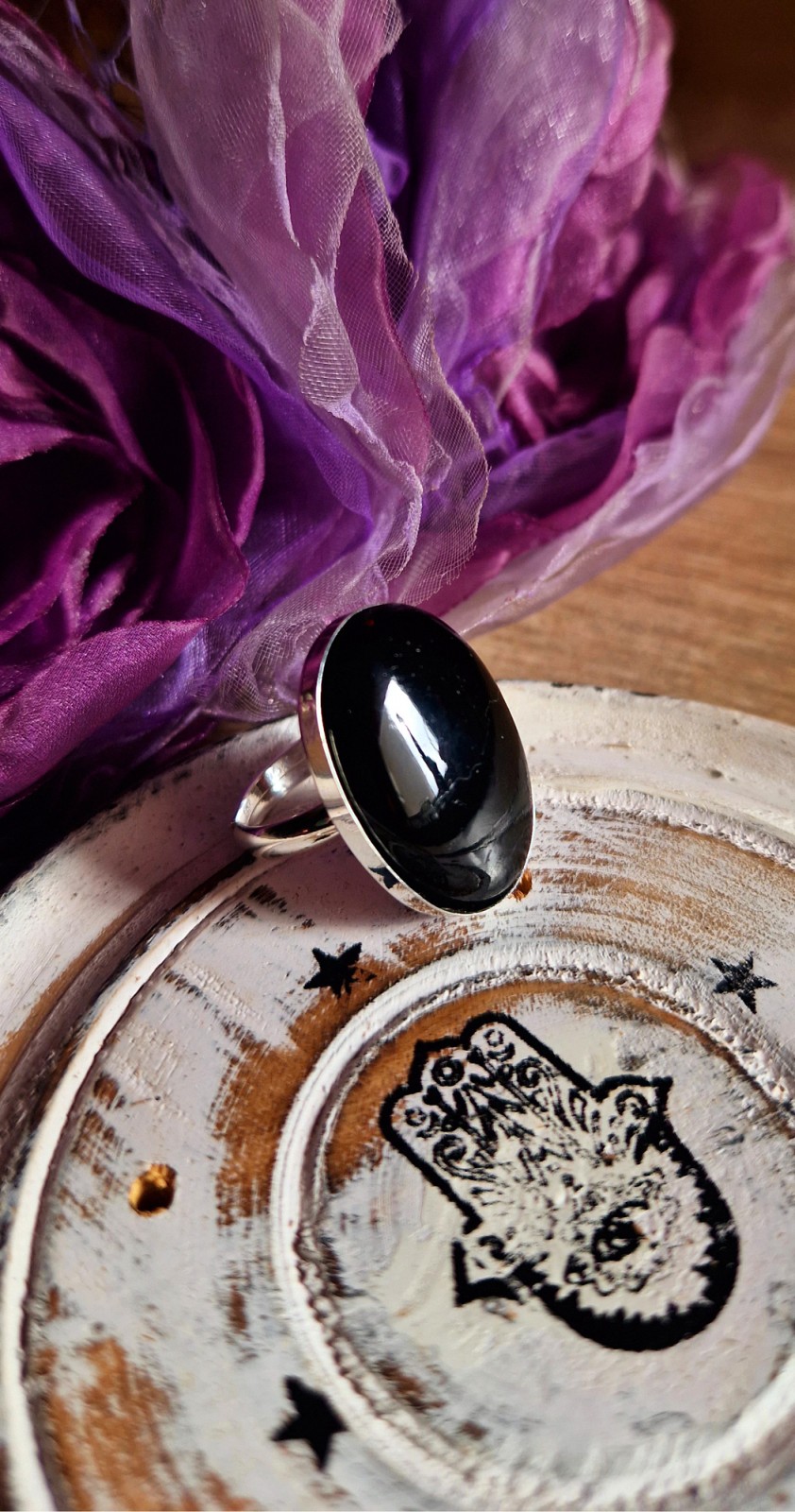wielkości 25x18 mm. Srebro 925 wolne od niklu. Obrączka regulowana i bardzo wygodna, rozmiar wyjściowy