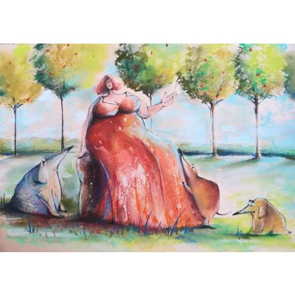 Praca oprawiona jest w białe passe partout oraz antyramę, po oprawieniu wymiar wynosi 30 cm x 40 cm