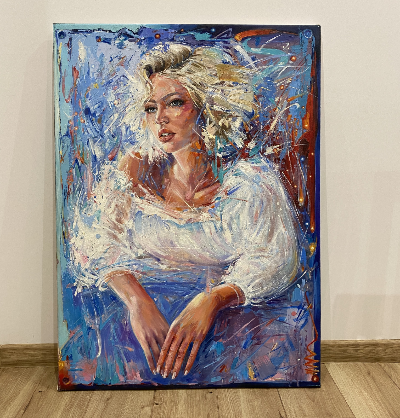 • Obraz malowany farbami olejnymi na płótnie bawełnianym o wymiarze 110x80cm, rok wykonania 2023.