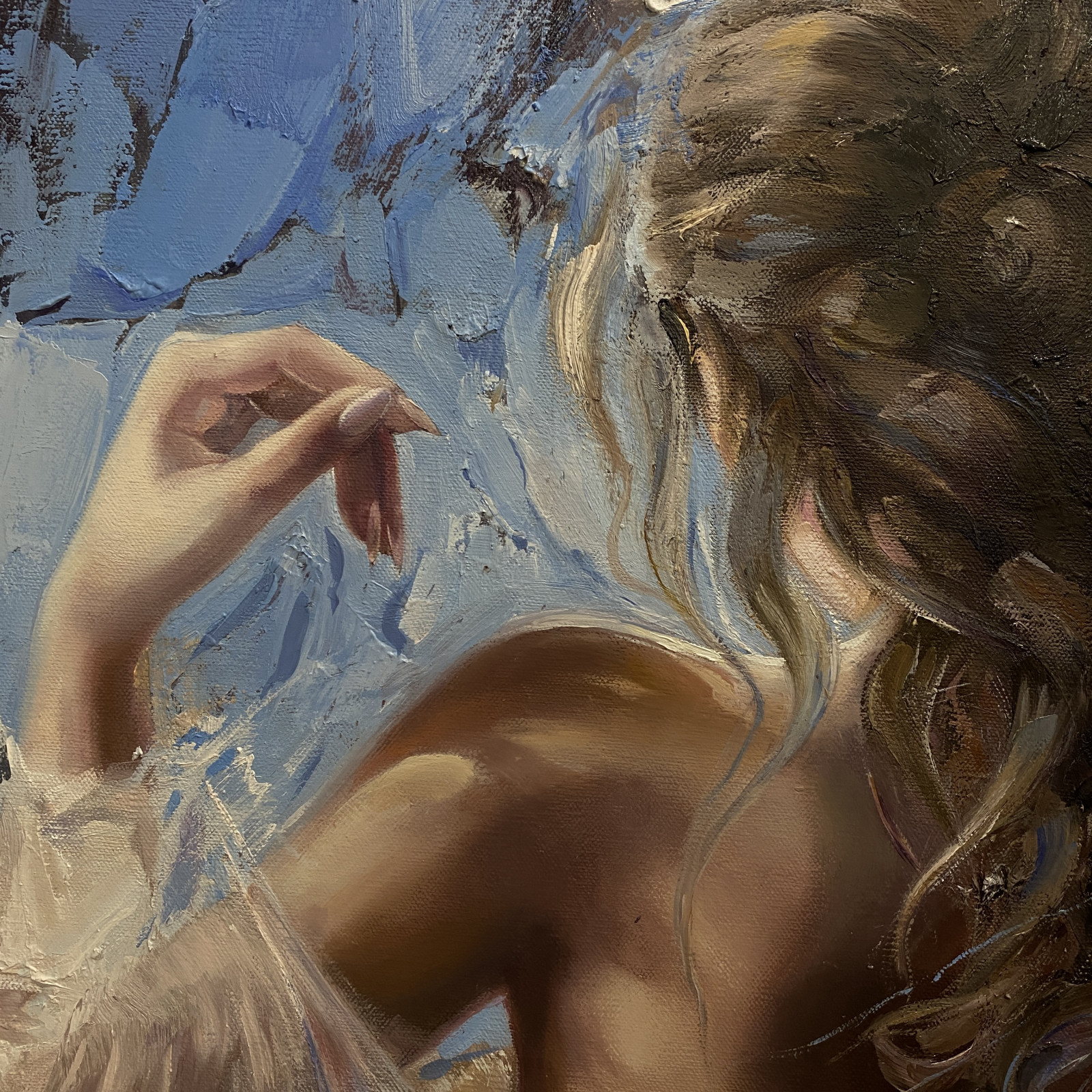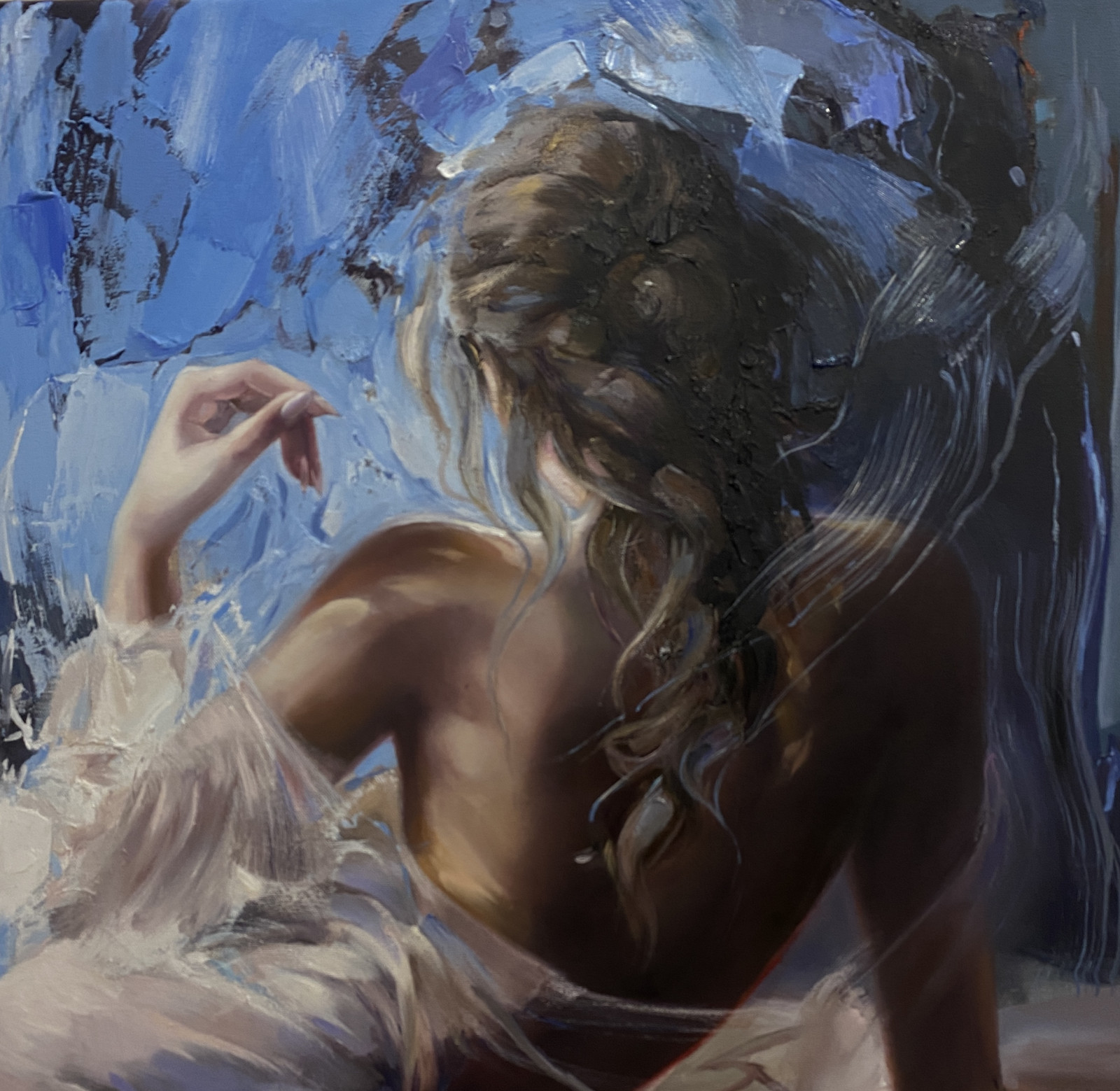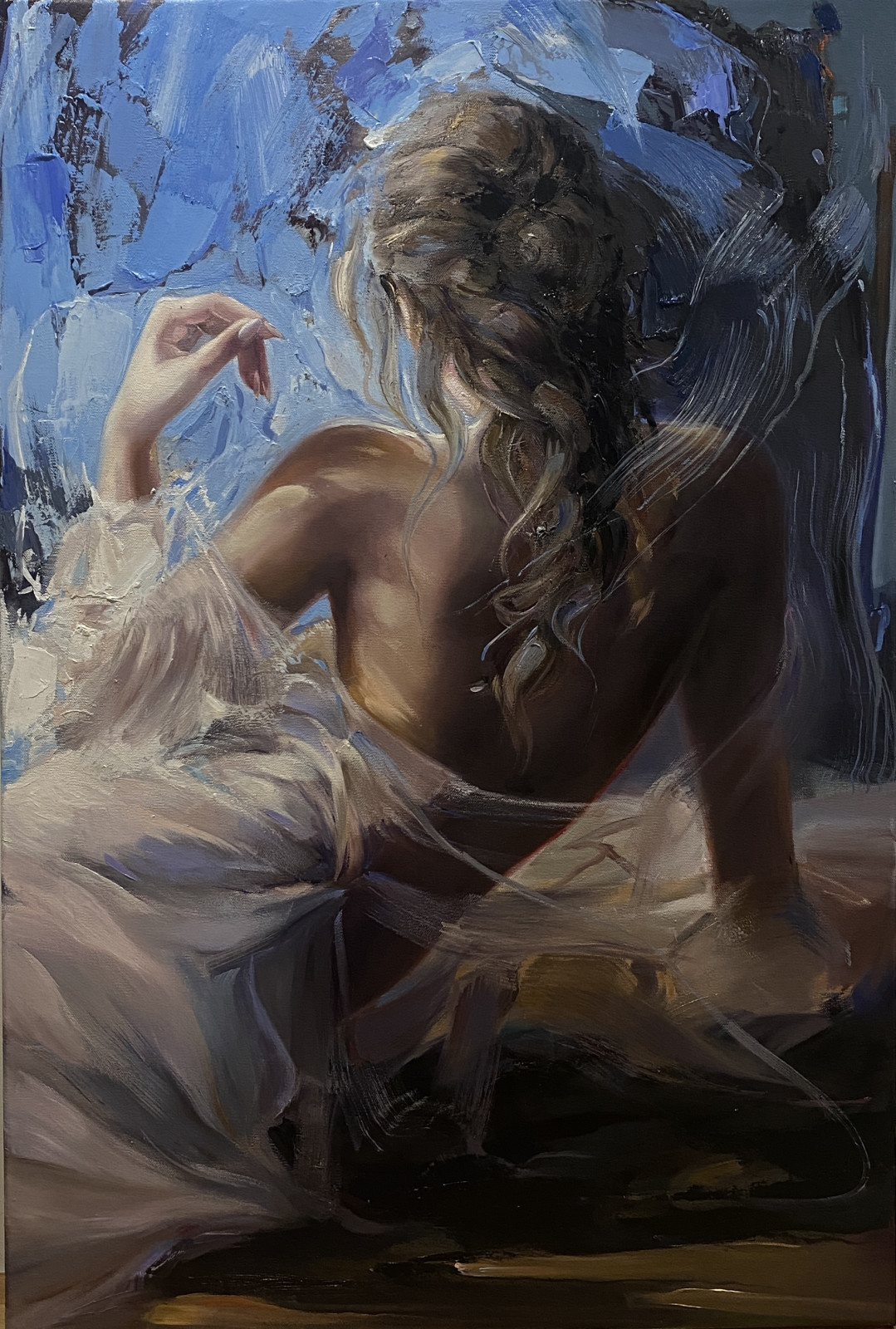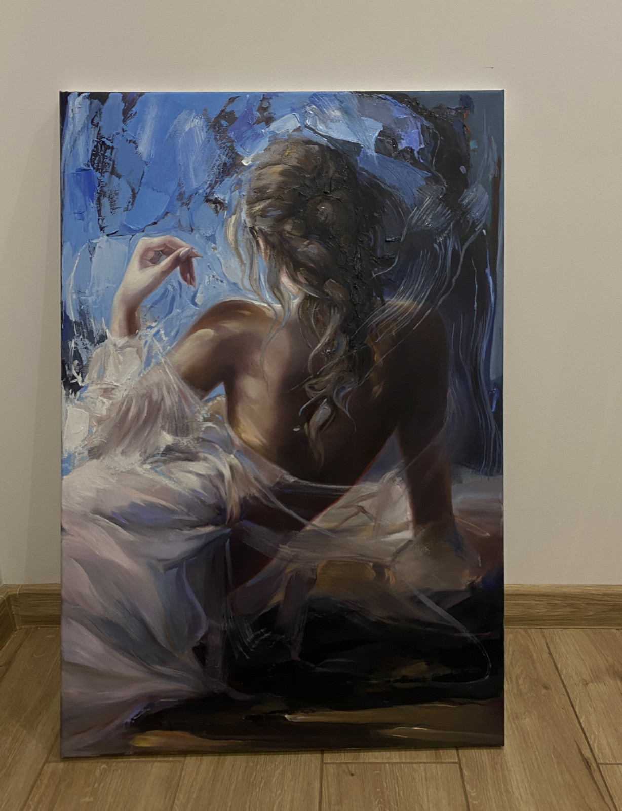 • Obraz malowany farbami olejnymi na płótnie bawełnianym o wymiarze 90x60cm, rok wykonania 2025-26.