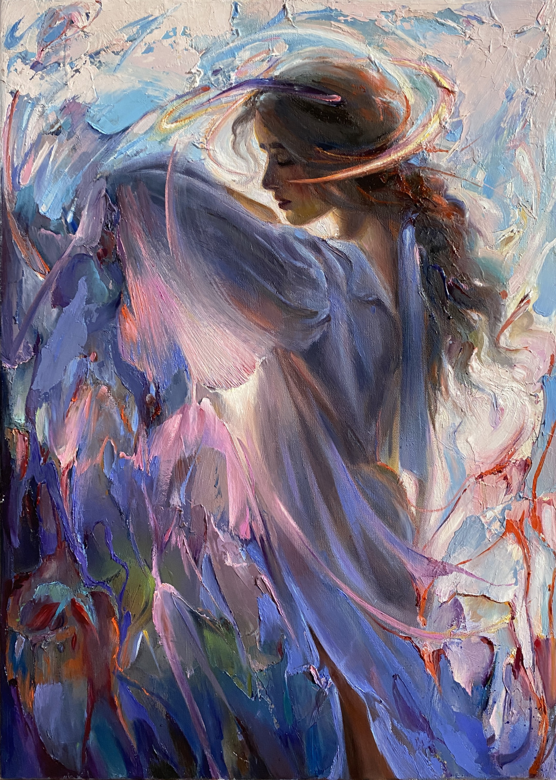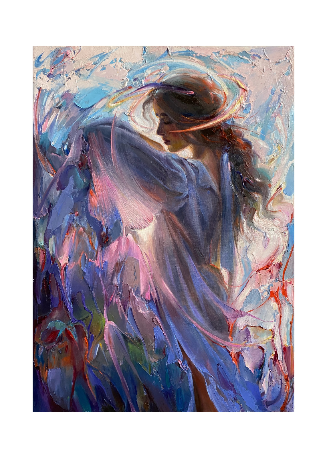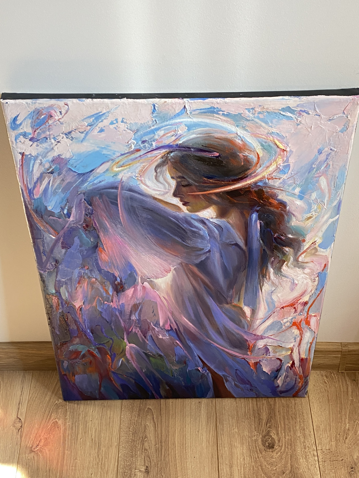 Obraz malowany farbami olejnymi na płótnie bawełnianym o wymiarze 70×50cm, rok wykonania 2026.