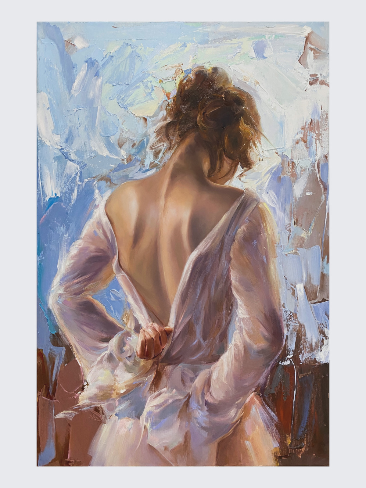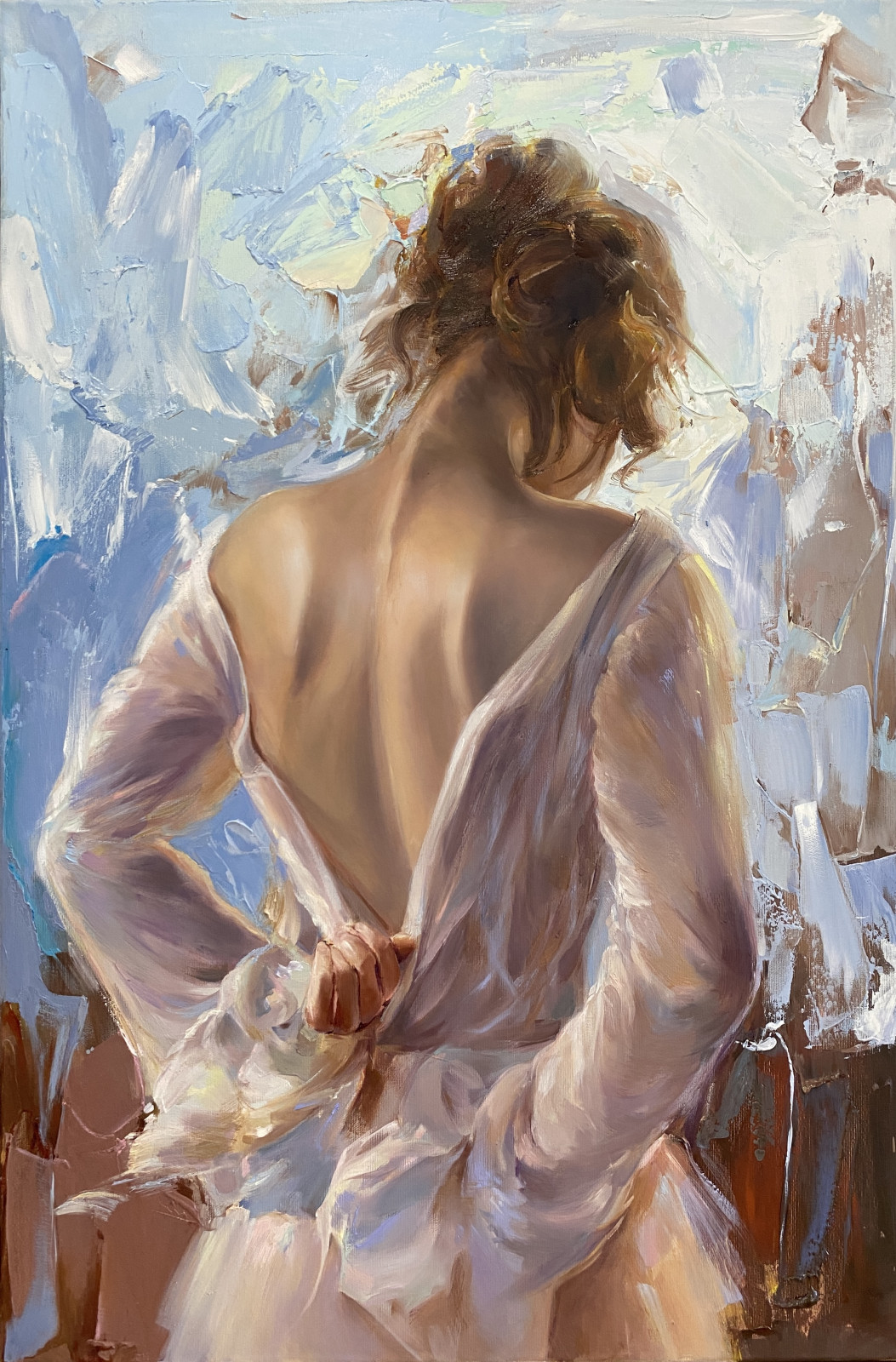 • Obraz malowany farbami olejnymi na płótnie bawełnianym o wymiarze 90x60cm, rok wykonania 2026.