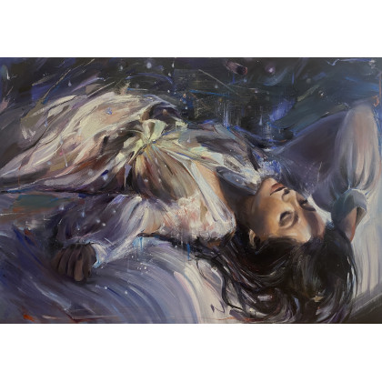 • Obraz malowany farbami olejnymi na płótnie bawełnianym o wymiarze 70x100cm, rok wykonania 2025.