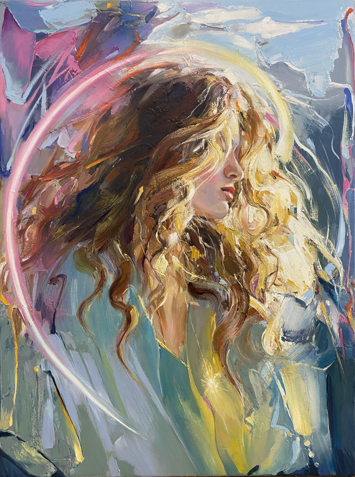 Obraz malowany farbami olejnymi na płótnie bawełnianym o wymiarze 80x60cm, rok wykonania 2026