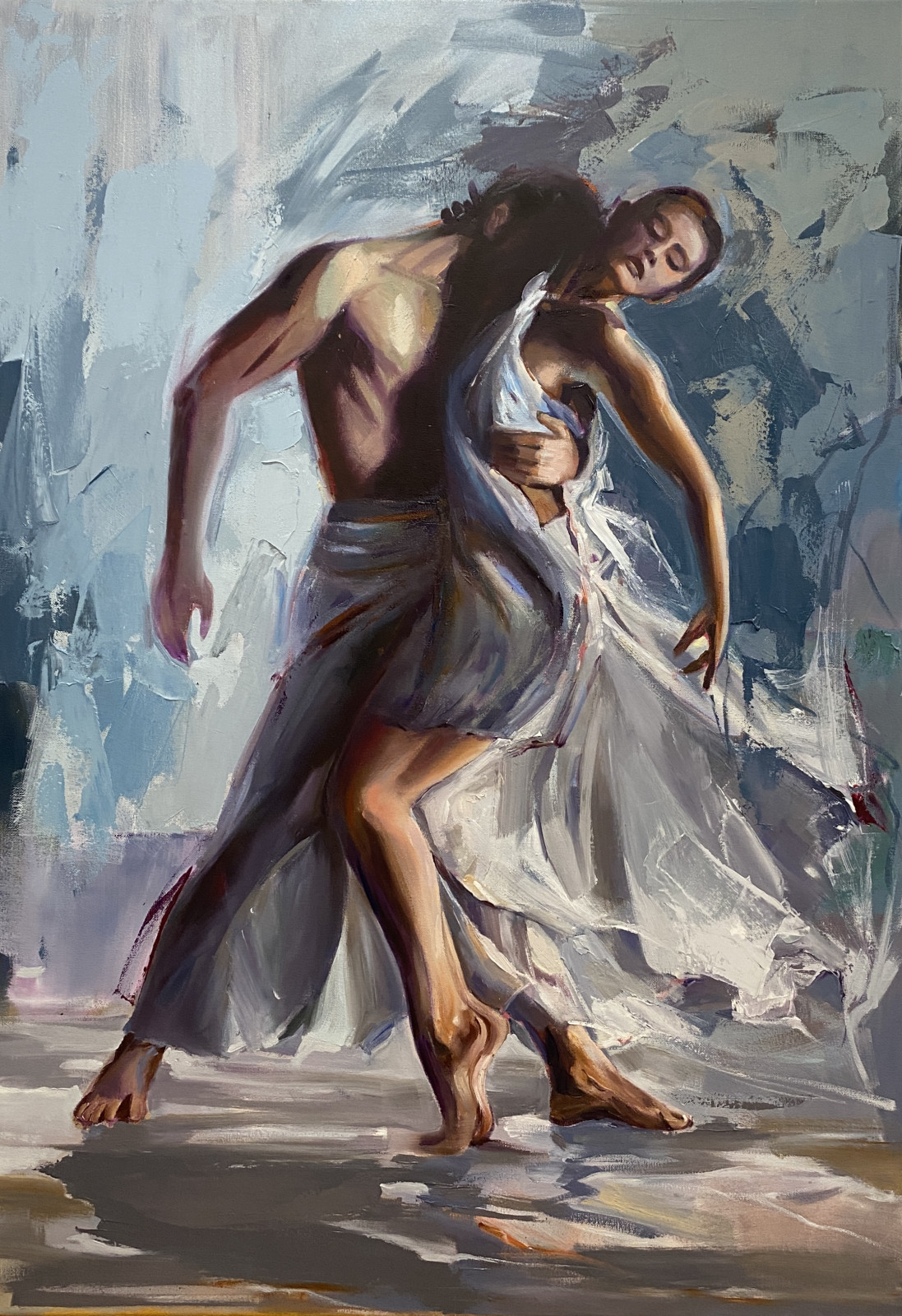 • Obraz malowany farbami olejnymi na płótnie bawełnianym o wymiarze 100x70cm, rok wykonania 2026.
