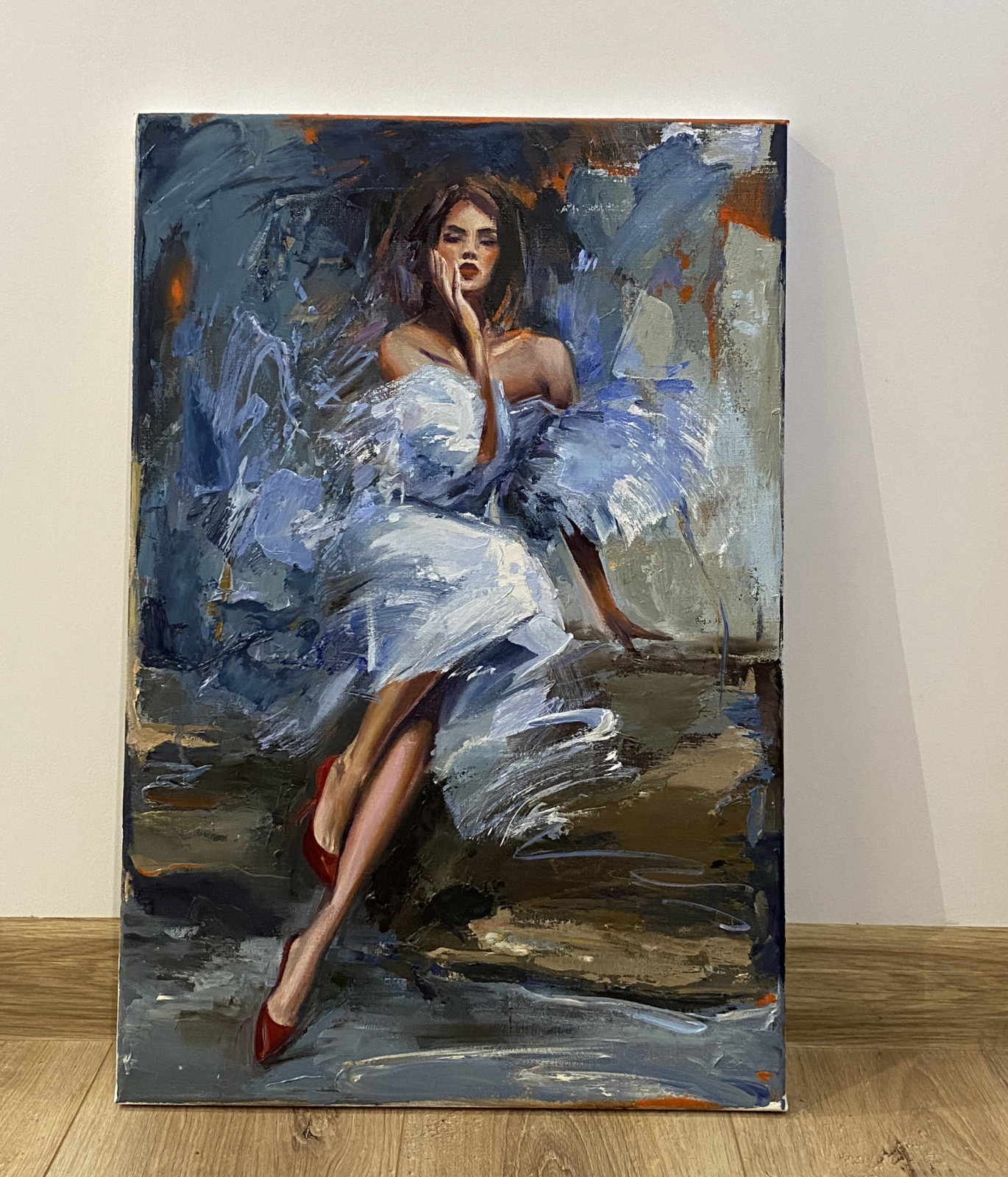Obraz malowany farbami olejnymi na płótnie bawełnianym o wymiarze 60x40cm, rok wykonania 2025.