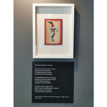 Asamblaż inspirowany wierszem Wisławy Szymborskiej pt. Konkurs piękności męskiej (tekst poniżej).