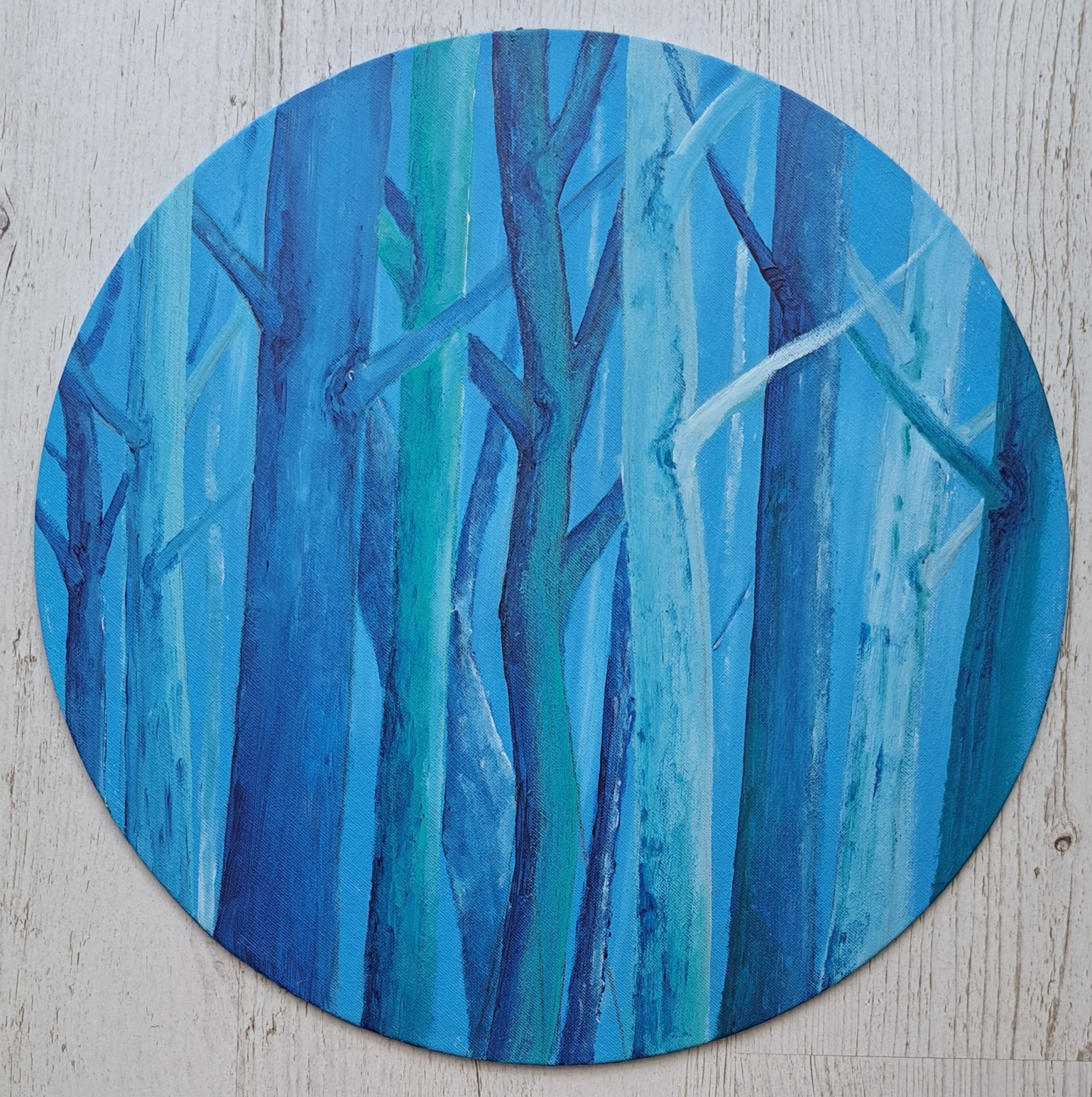 Obraz w formacie koła o średnicy 40 cm został namalowany farbami akrylowymi na panelu malarskim. Praca prezentowana była na wystawie zbiorowej w Pracowni Miniatura w Lublinie w ramach cyklu Sztuka Figuratywna.