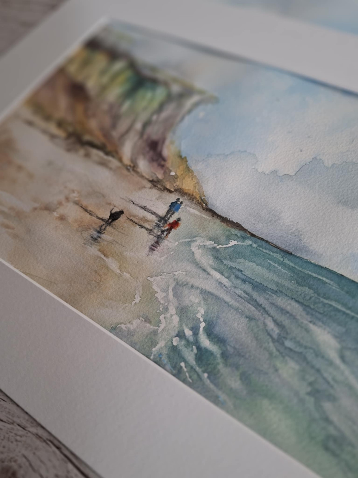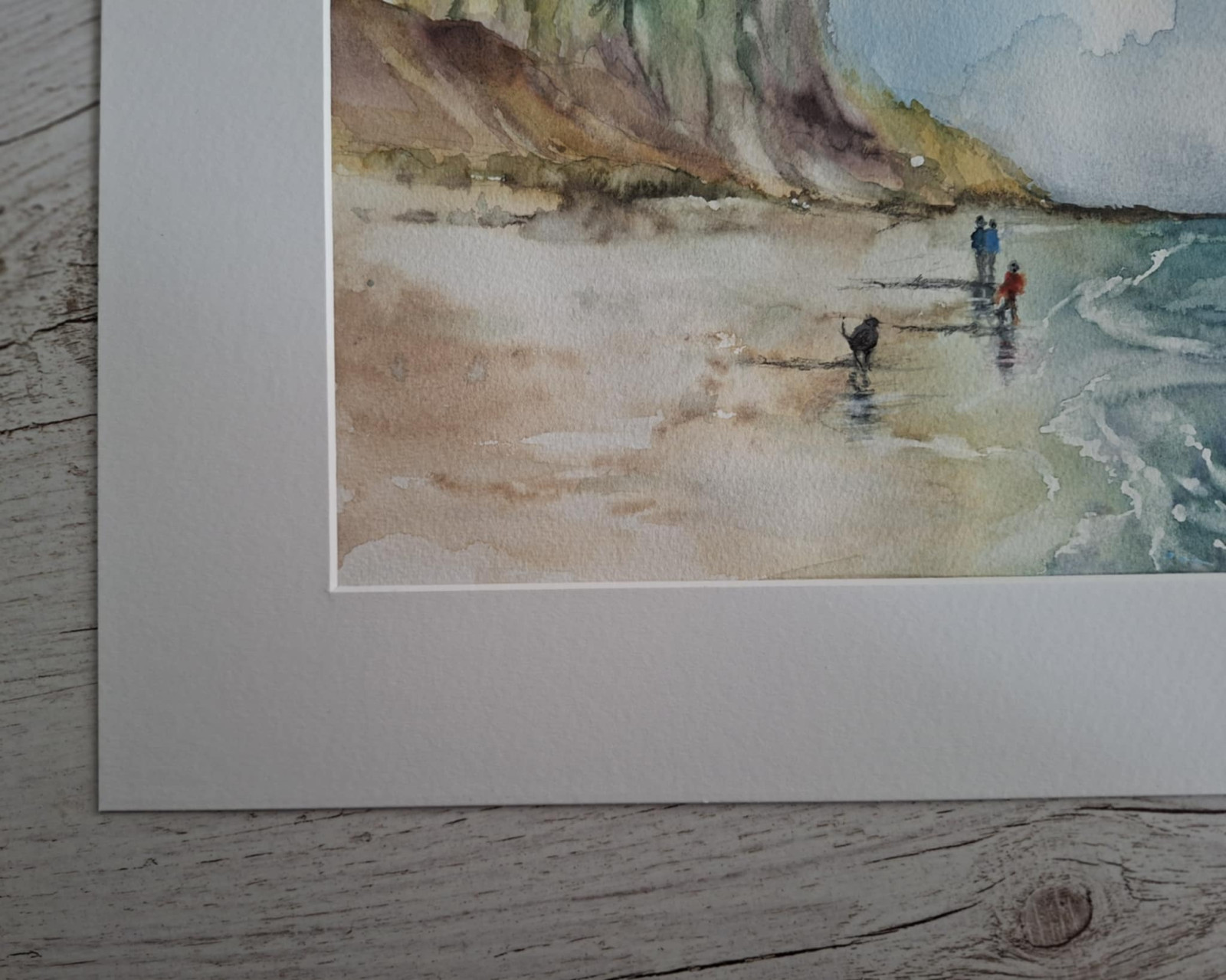 Akwarela w formacie 20x29 cm namalowana została na włoskim papierze akwarelowym wysokiej jakości: Magnani Italia, o 100% zawartości bawełny i gramaturze 300. Praca oprawiona jest w białe passe-partout o wymiarach zewnętrznych 30x40 cm.