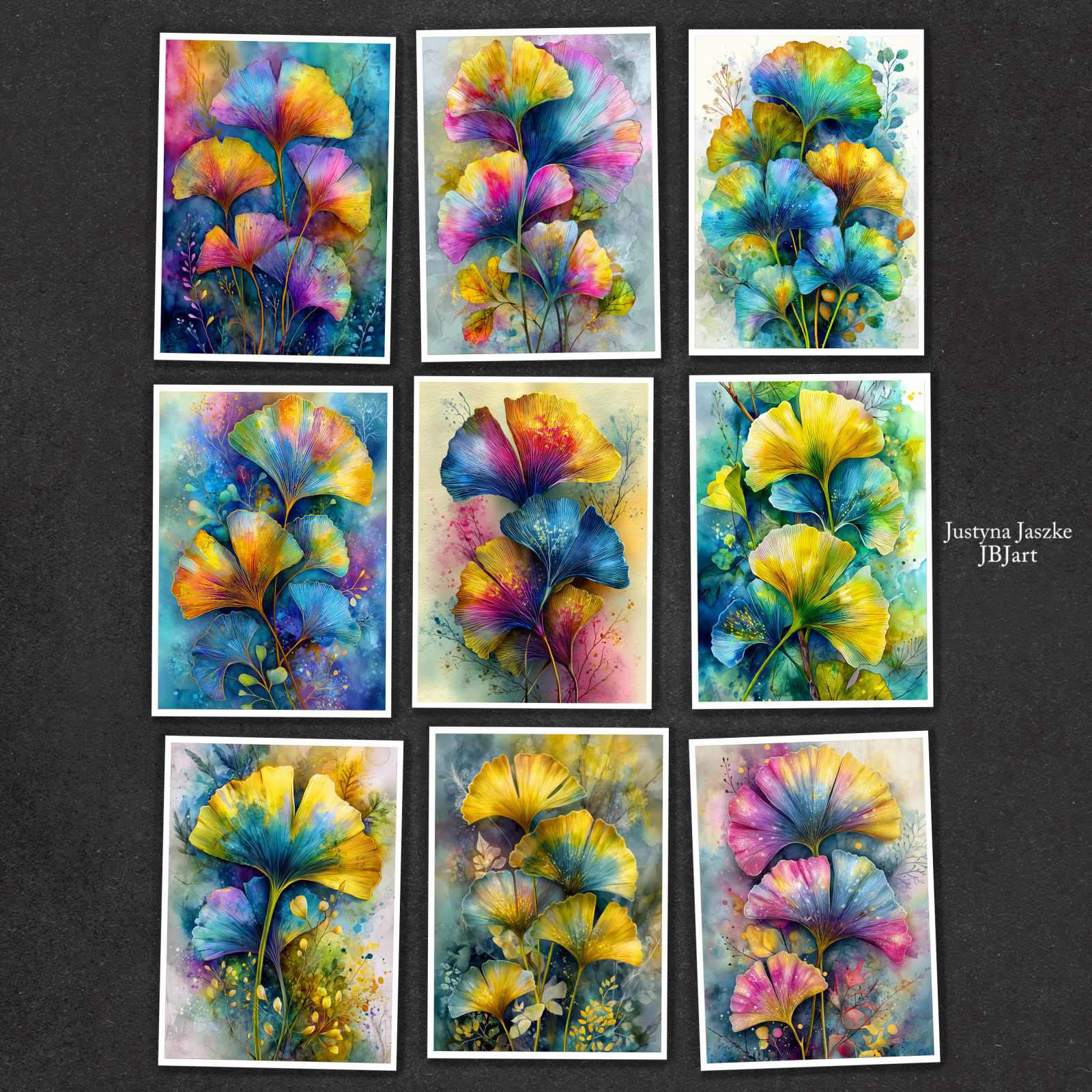 Ginkgo Biloba liście - zestaw 9 grafik 15x21 cm