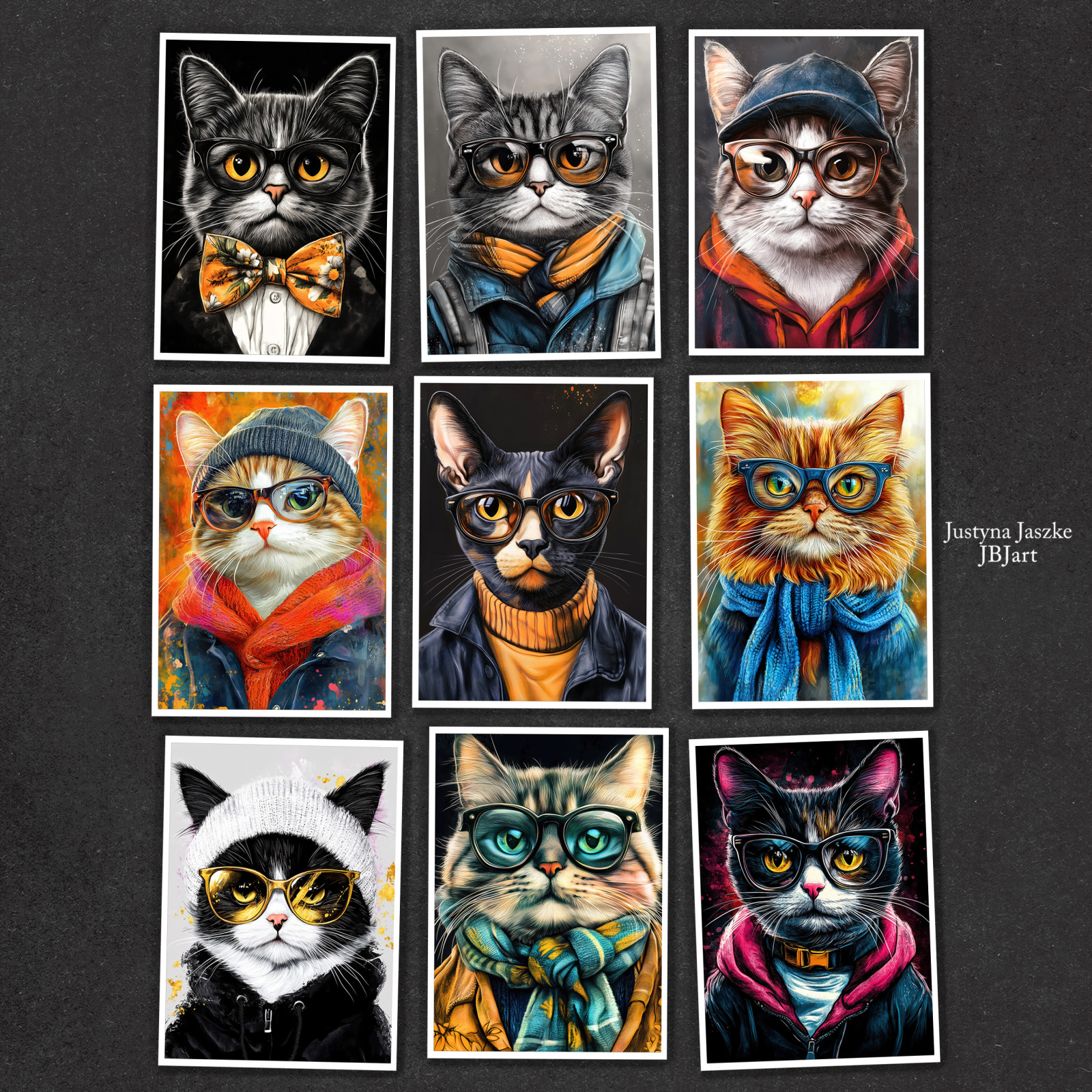 Hipsterskie koty 2 - zestaw 9 grafik 15x21 cm