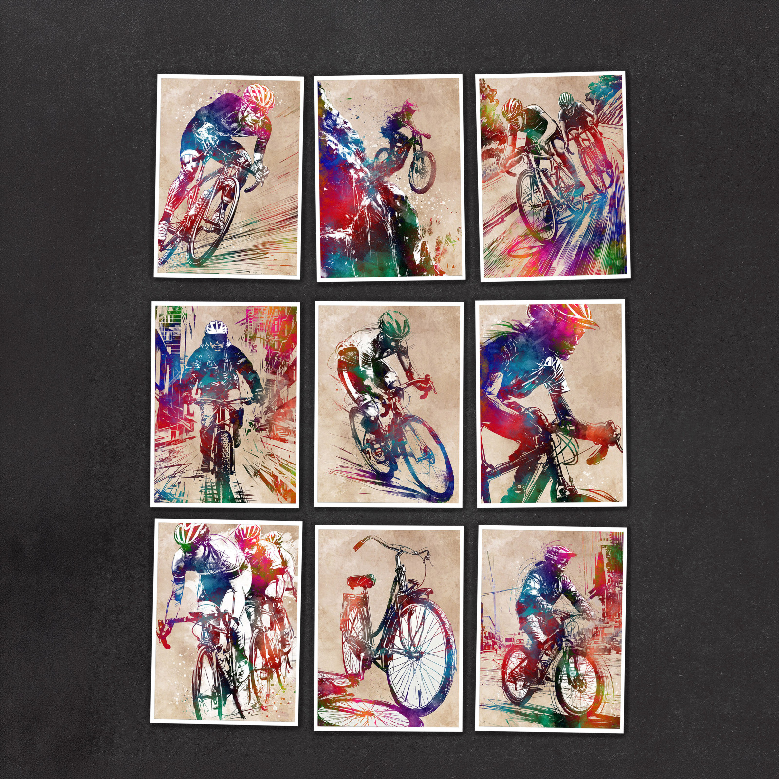 Rowerzyści 2 - zestaw 9 grafik 15x21 cm