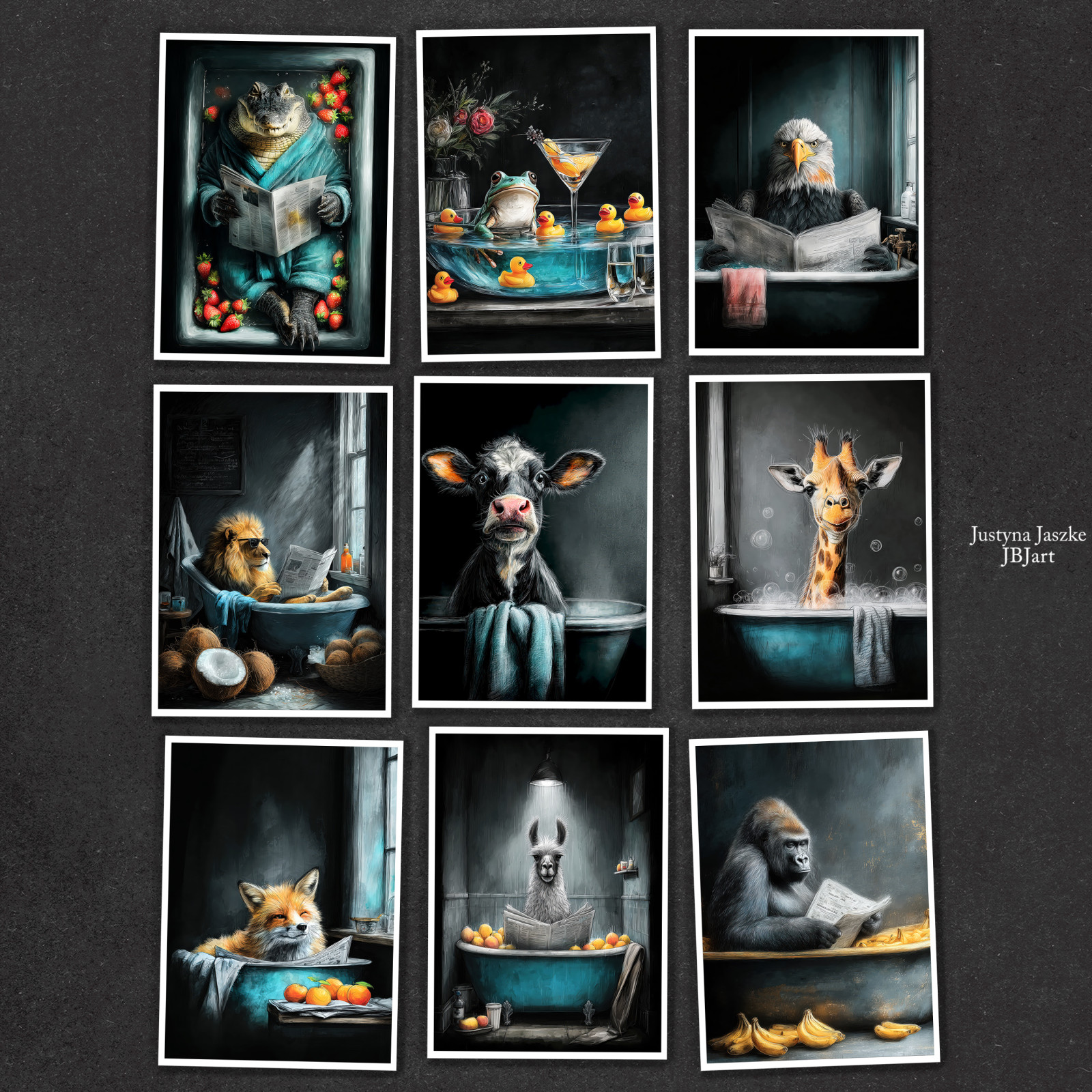 Zwierzęta w kąpieli - zestaw 9 grafik 15x21 cm