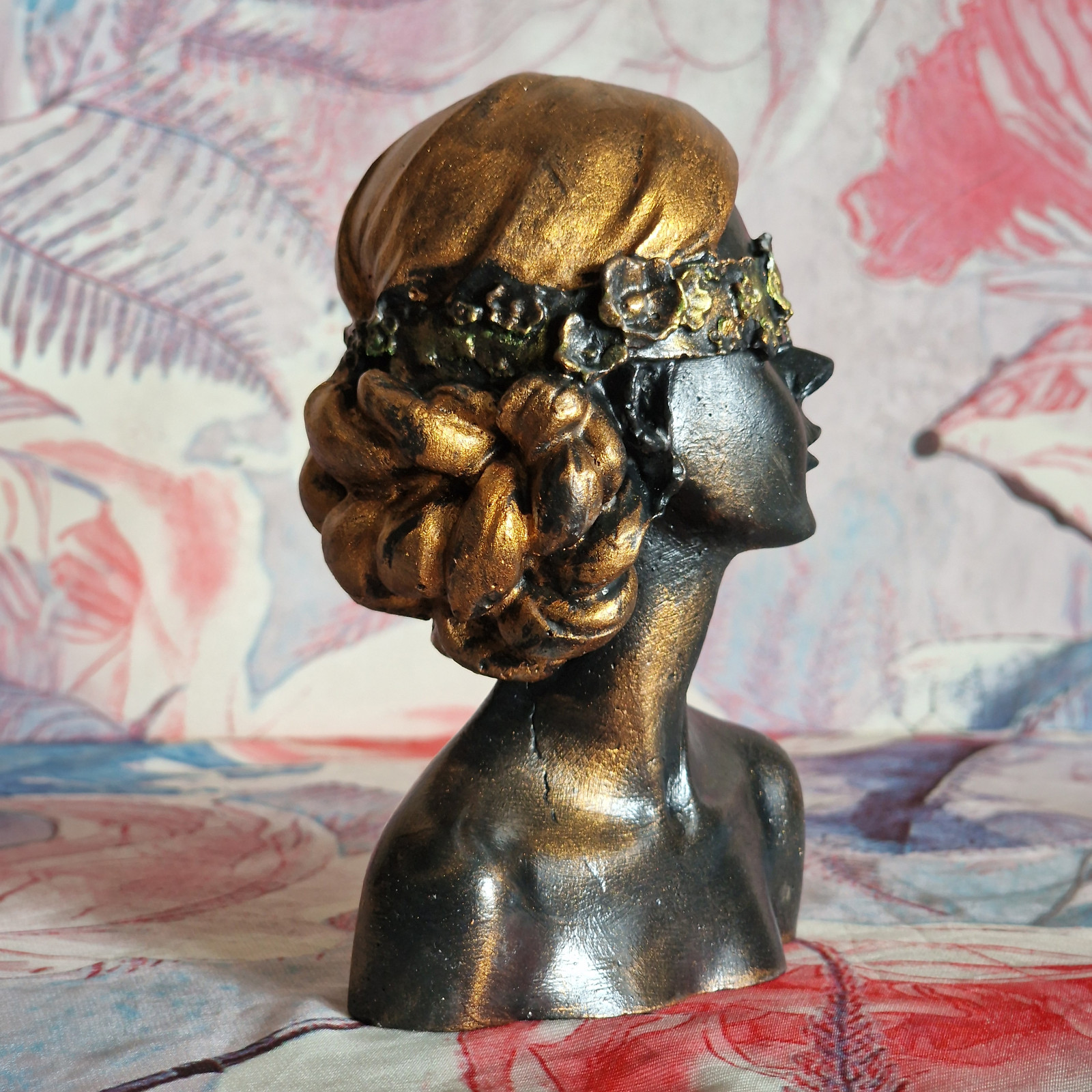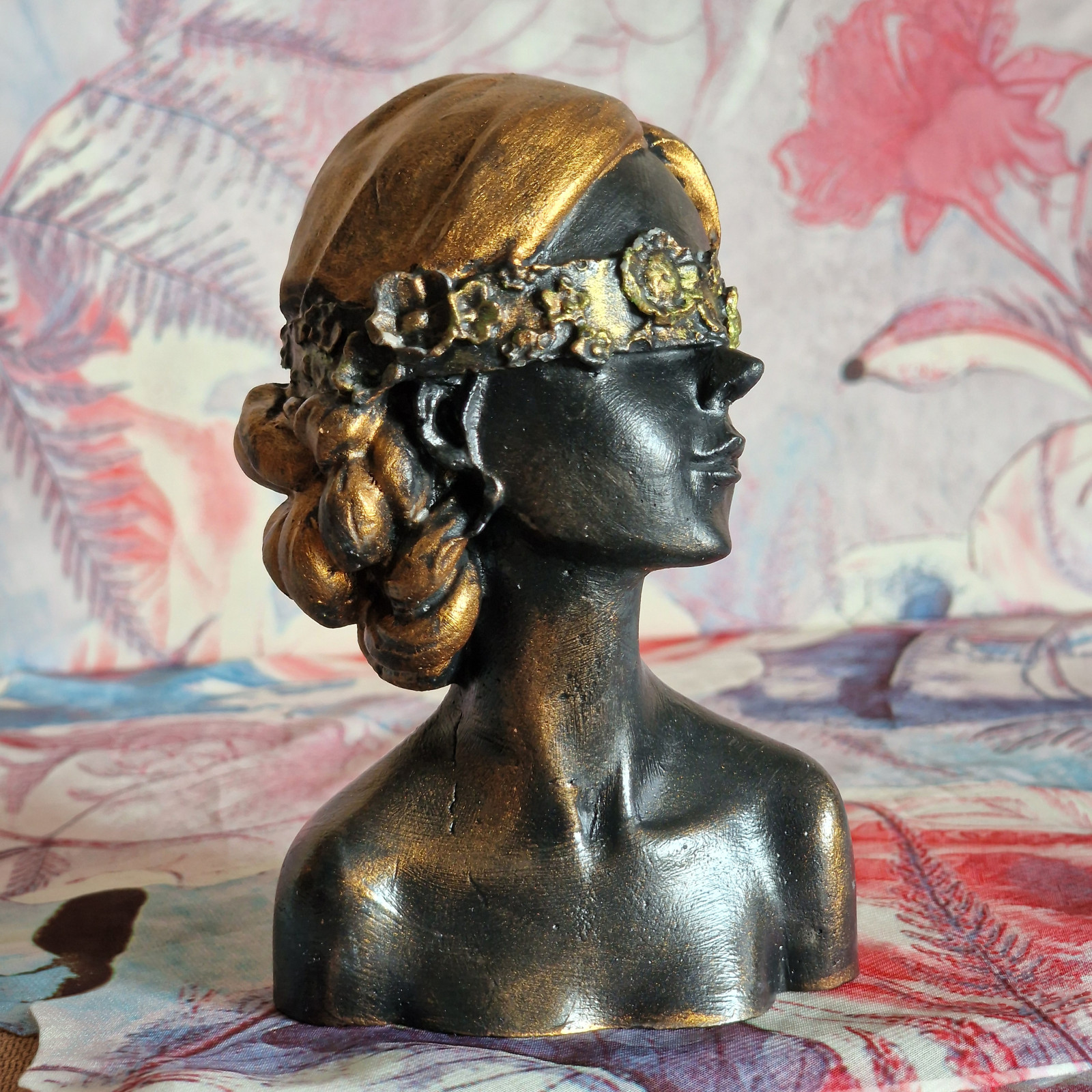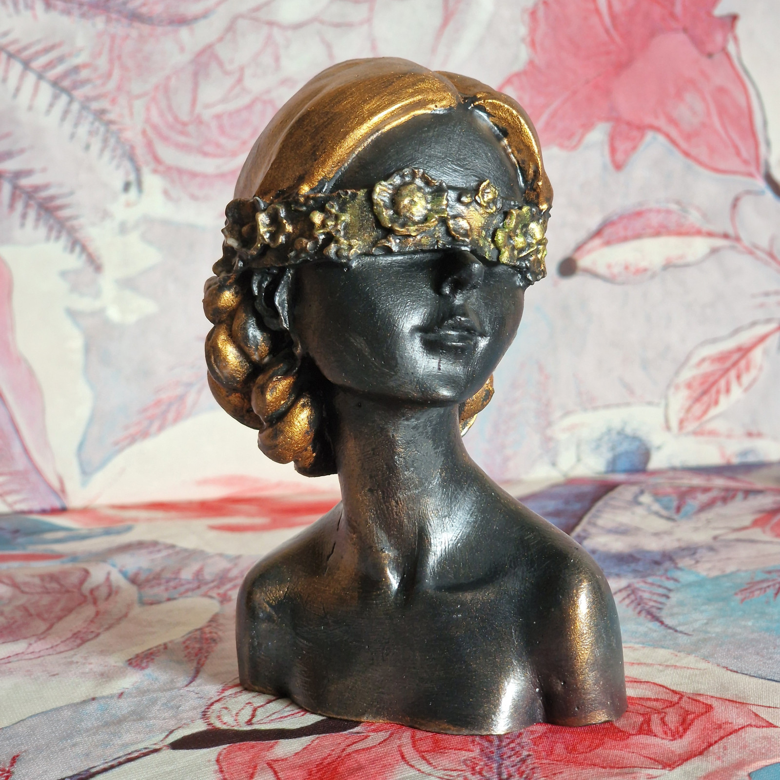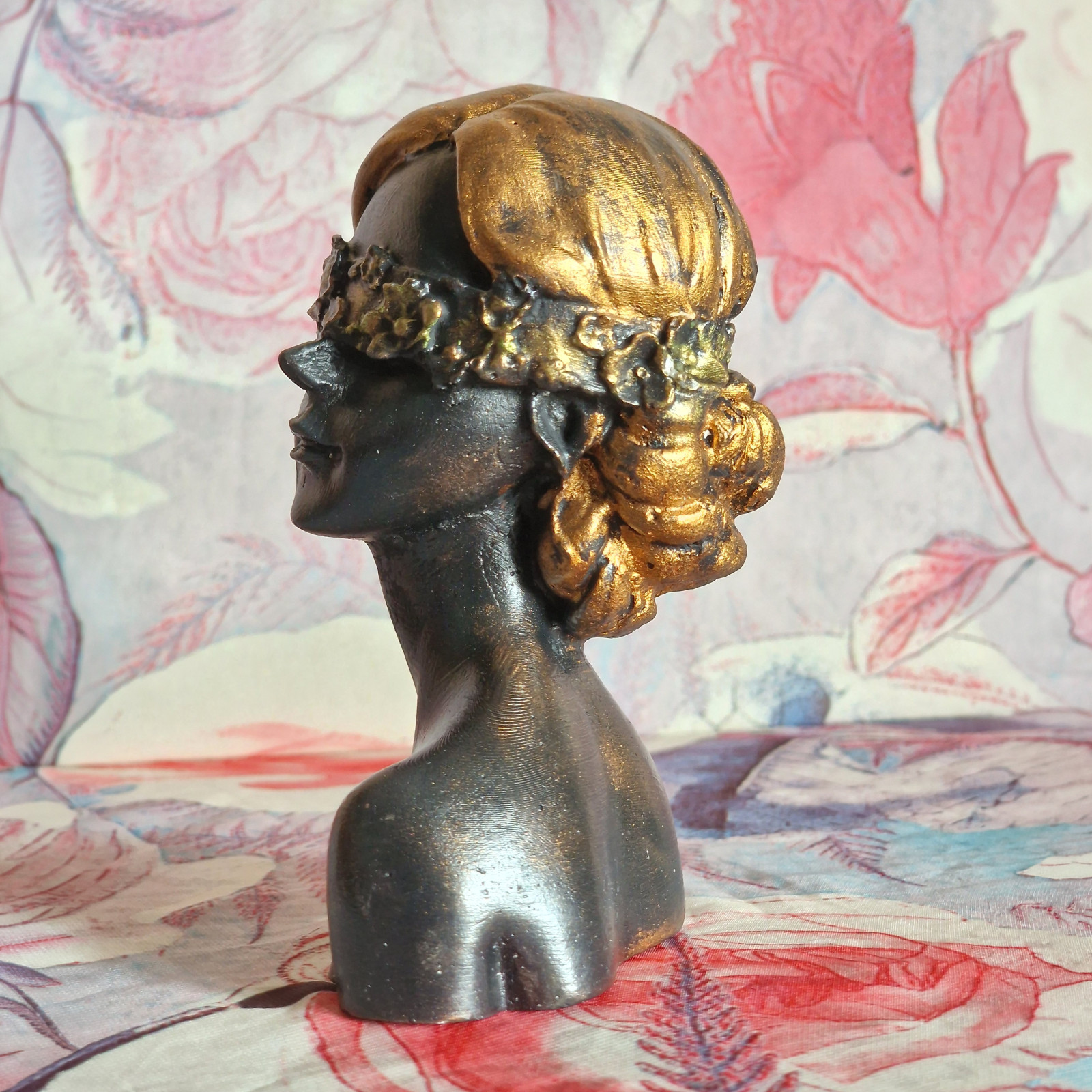 Rzeźba z gipsu duża Kobieta z kwiatami na oczach wys. 14 cm