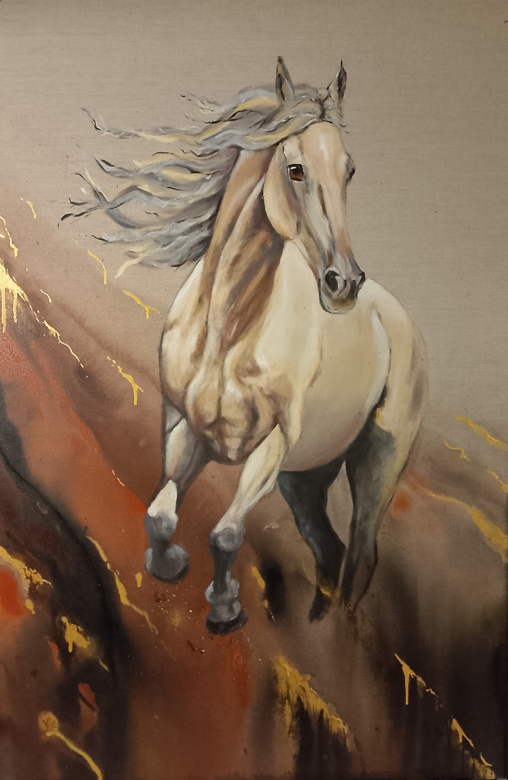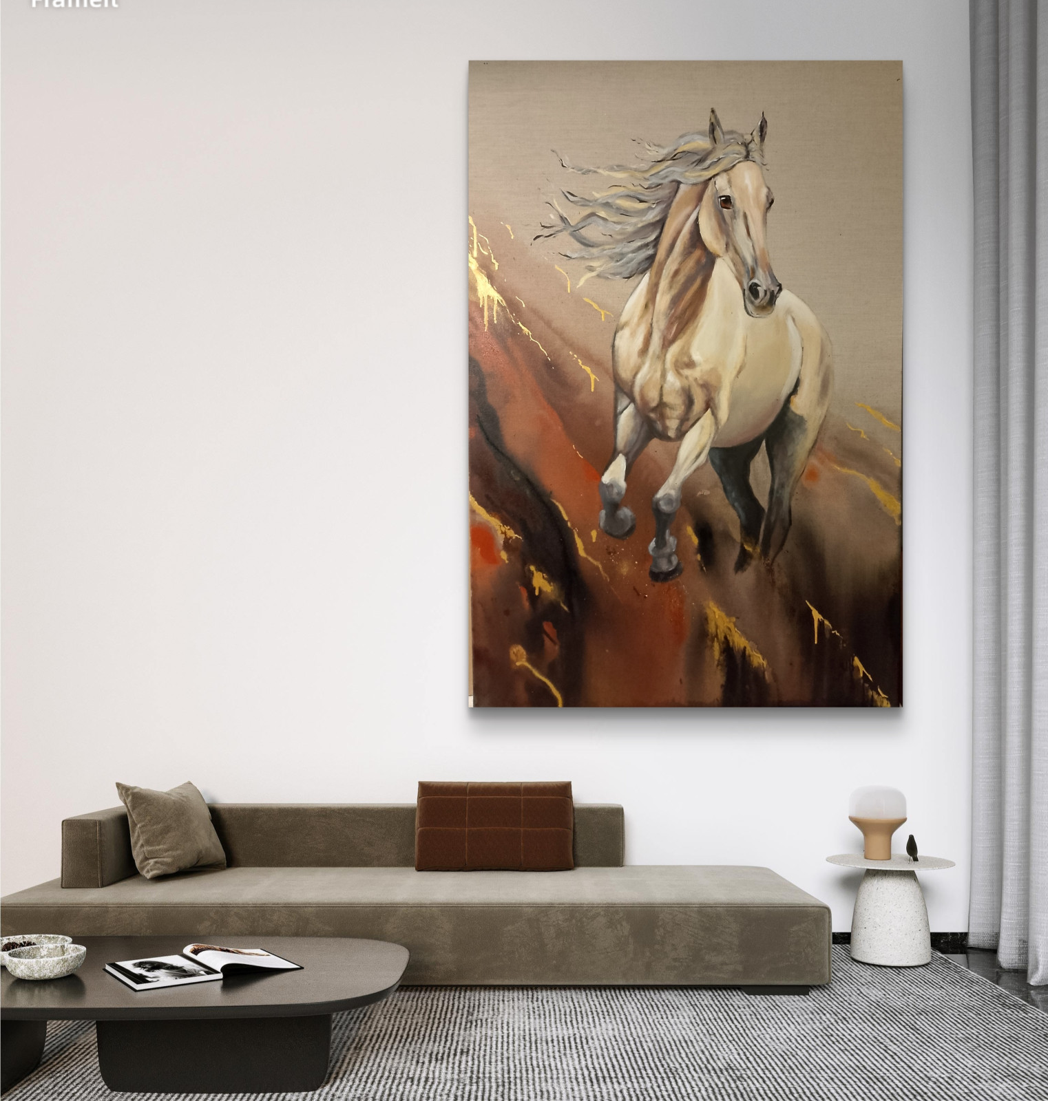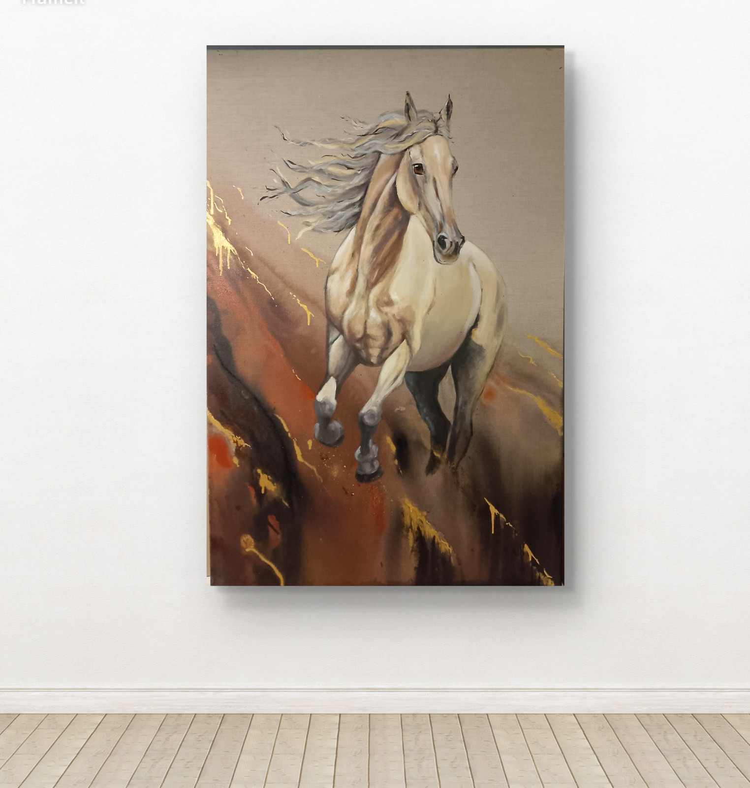 Obraz malowany na płótnie farbami akrylowymi duży 120/80 płótno naturalny len w kolorach ciepłego brązu beżu i złota.Obraz gotowy do zawieszenia szybka i bezpieczna wysyłka .Obraz z certyfikatem sygnowany.