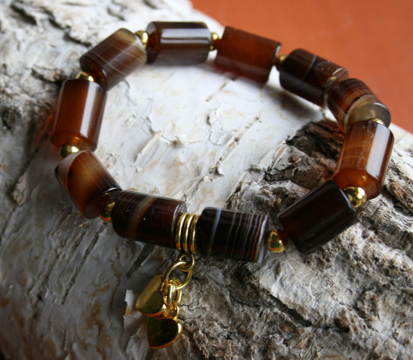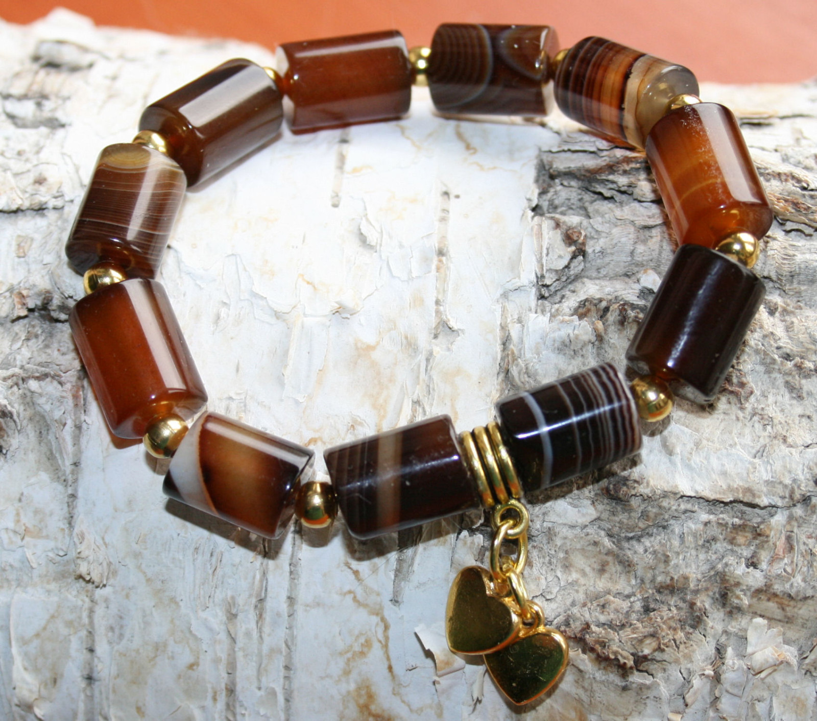 Bransoletka z agatu i przekładek stalowych kulek w kolorze złotym