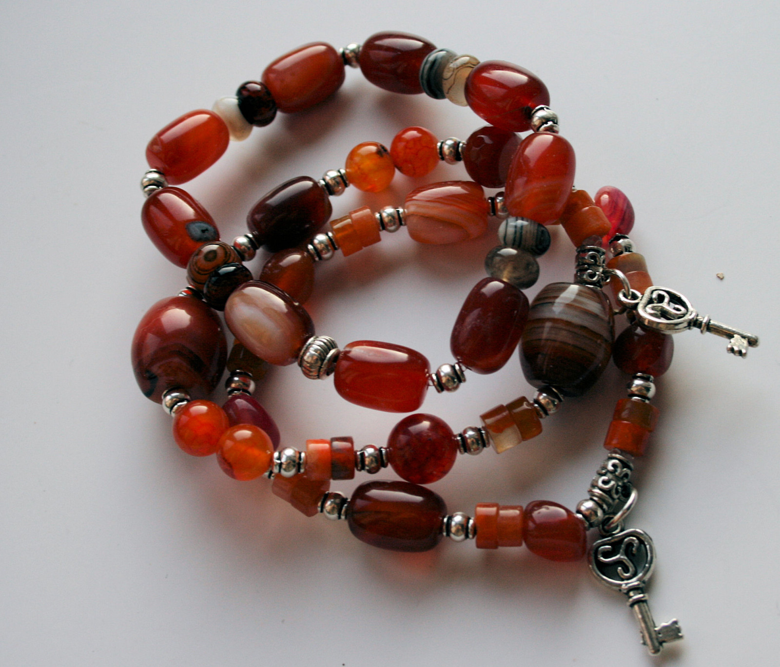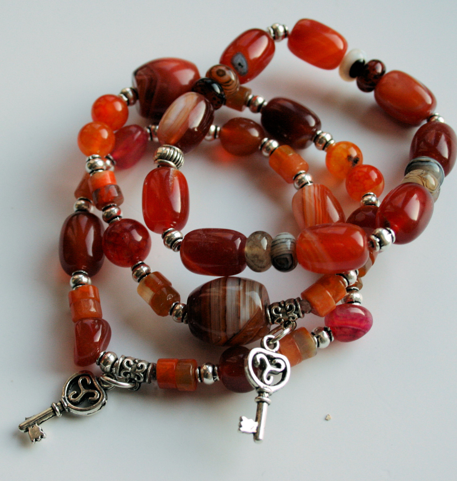 Trzy bransoletki na gumce z agatu z zawieszkami