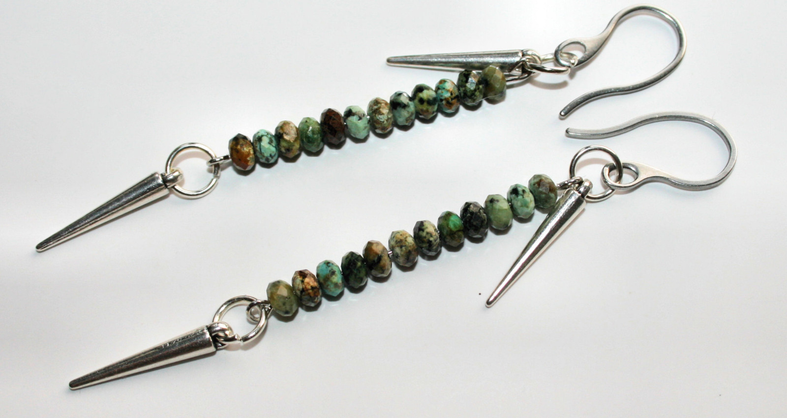 Kolczyki z jaspisu aqua terra , koraliki fasetowane 3x2 mm