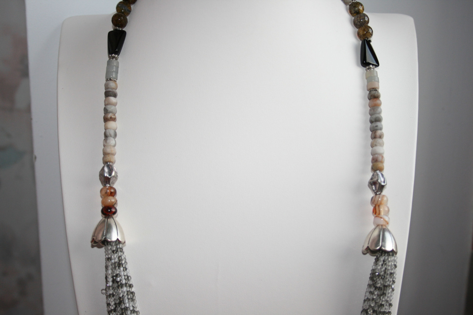 Naszyjnik z drobnych koralików szklanych jaspisu i agatu