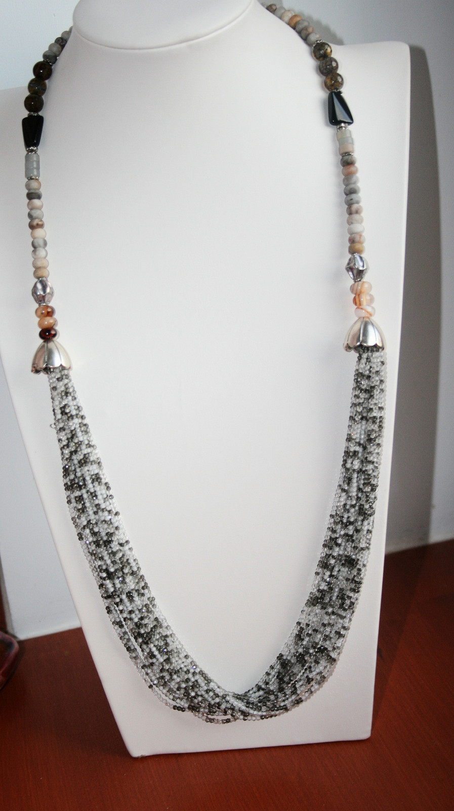 Naszyjnik wykonany z drobniutkich koralików szklanych jaspisu i agatu