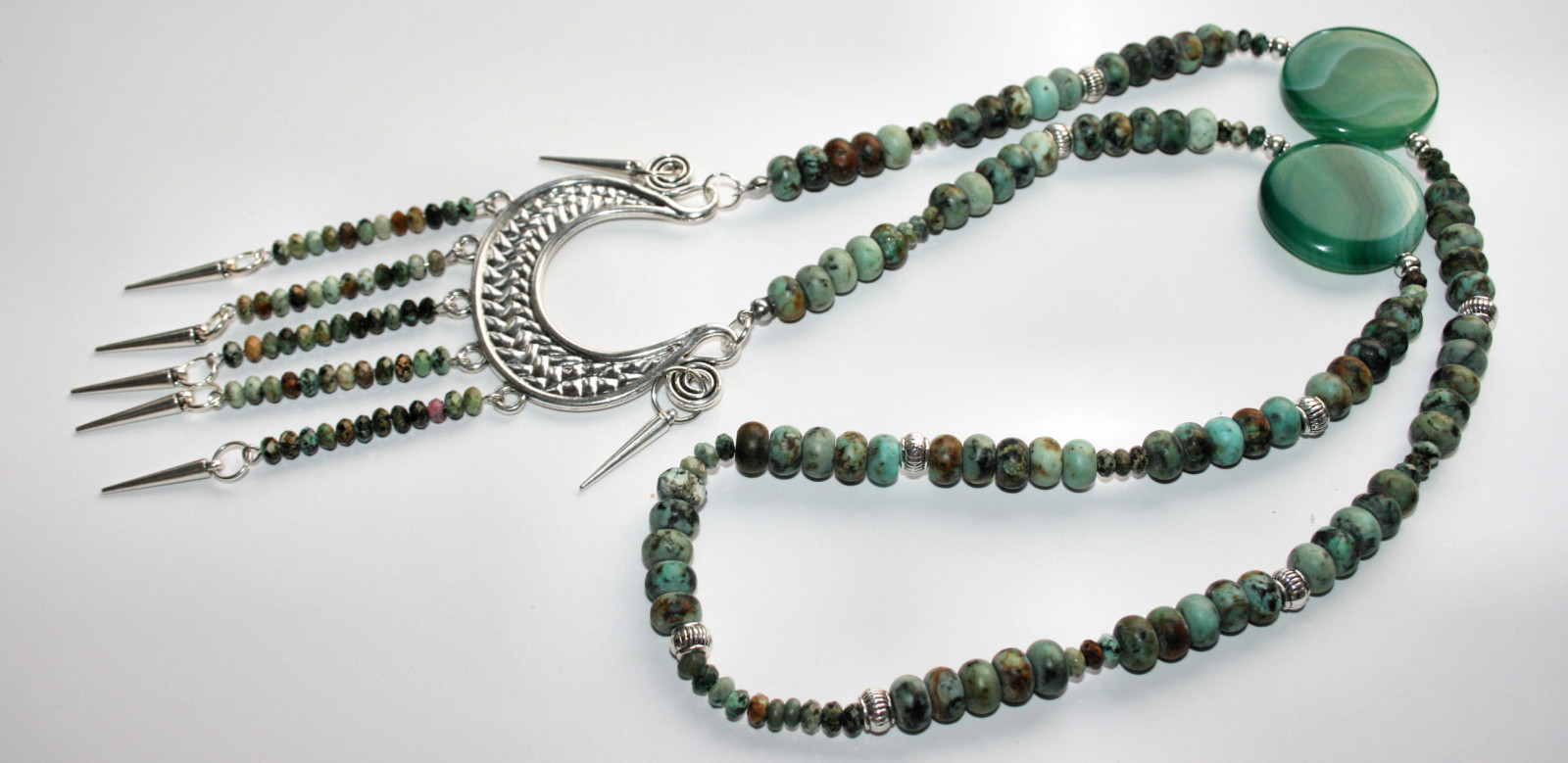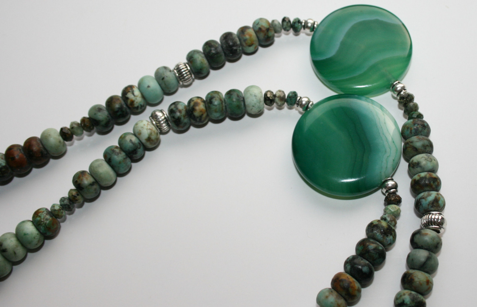 Koraliki wielkości 8x4 mm , 3,2 mm i pastylki agatu zielonego 3 cm