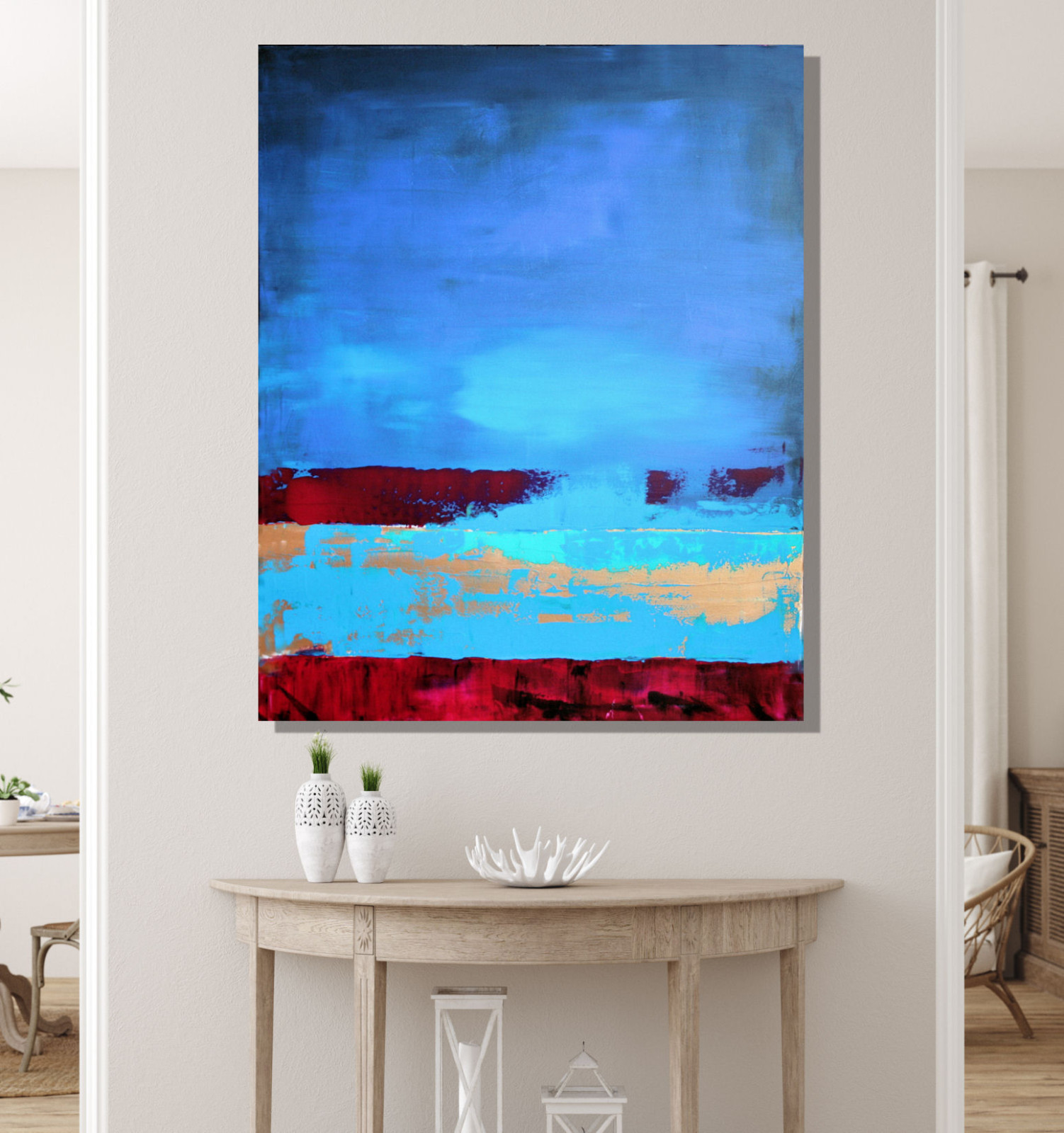 Obraz abstrakcyjny namalowany farbami akrylowymi na podobraziu bawełnianym o wymiarze 100x80 cm
