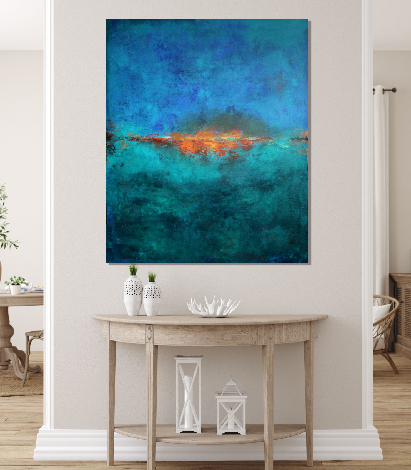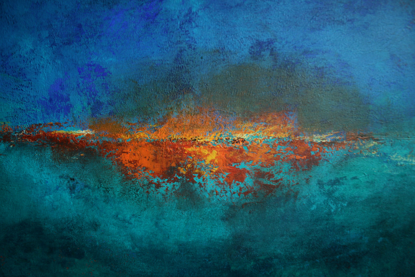 Obraz abstrakcyjny namalowany farbami akrylowymi na podobraziu bawełnianym o wymiarze 100x80 cm