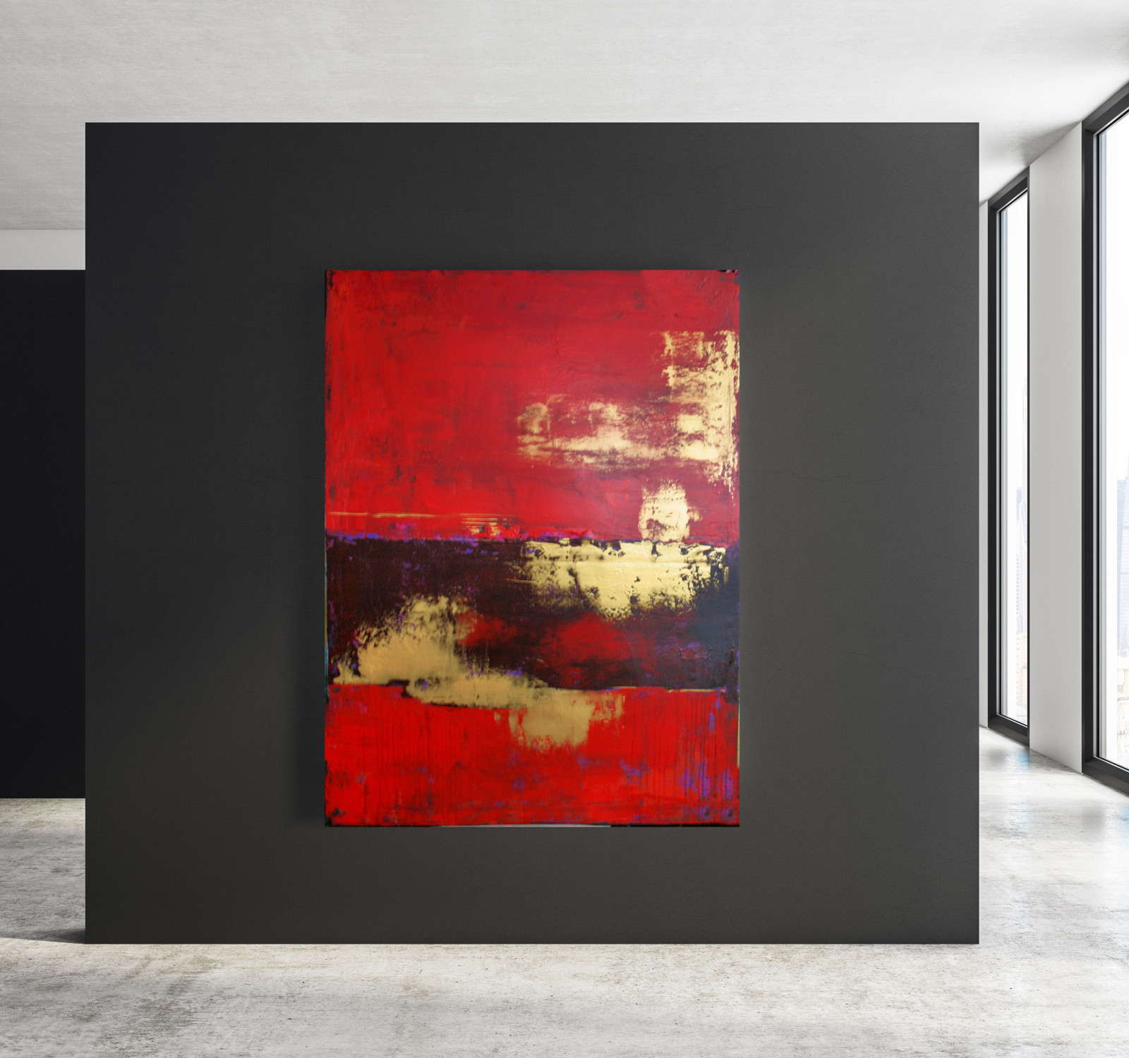Obraz abstrakcyjny namalowany farbami akrylowymi na podobraziu bawełnianym o wymiarze 100x80 cm
