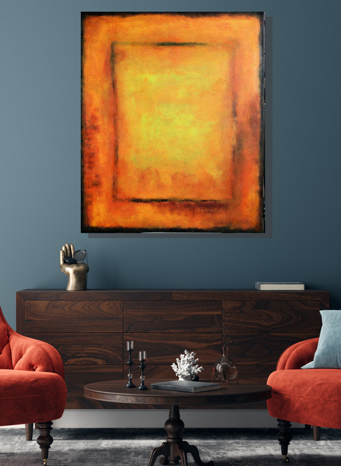 Obraz abstrakcyjny namalowany farbami akrylowymi na podobraziu bawełnianym o wymiarze 100x80 cm