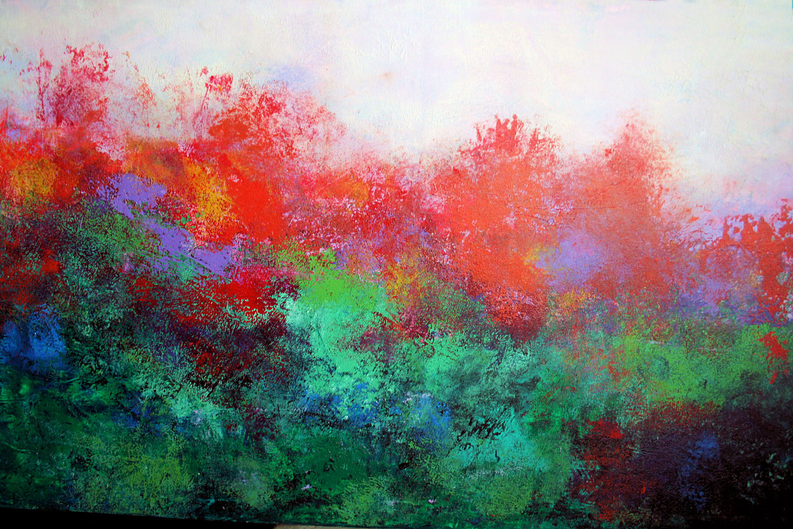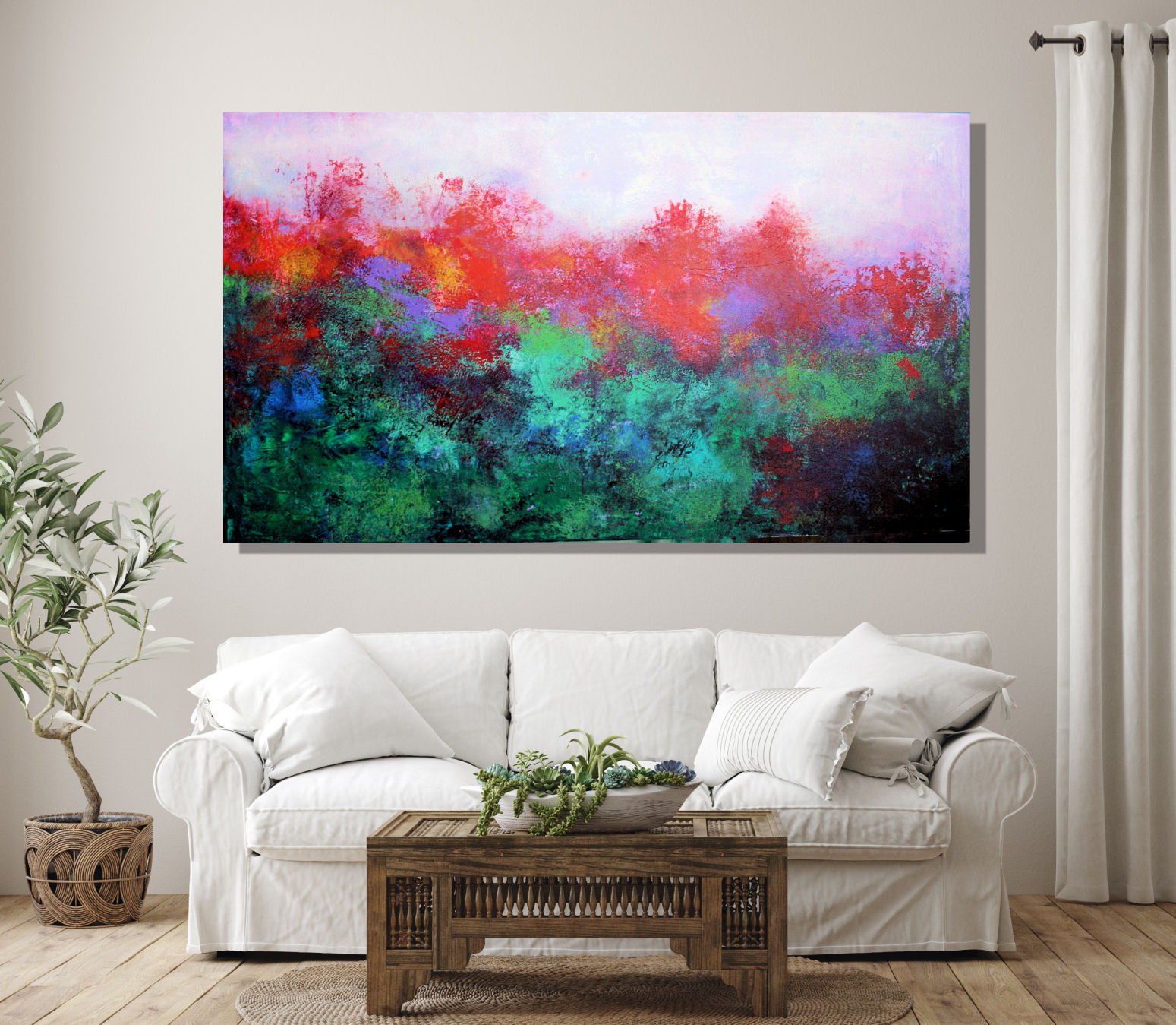 Obraz abstrakcyjny namalowany farbami akrylowymi na podobraziu bawełnianym o wymiarze 70x120 cm