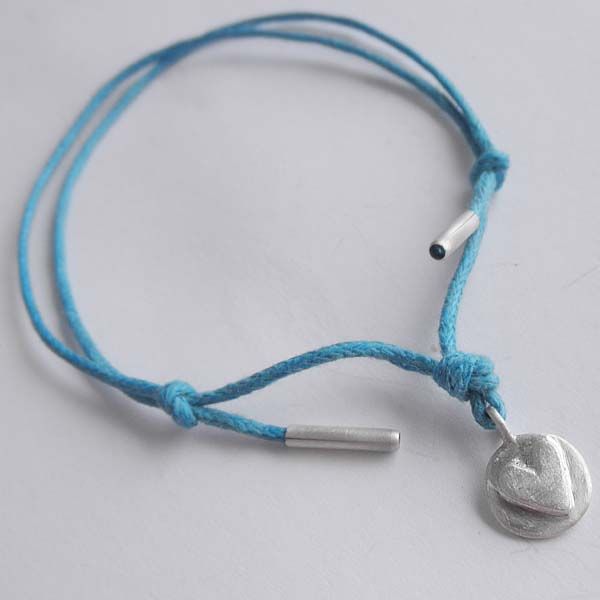 Serduszko bransoletka - uroczy dodatek . Idealna dla kobiet ceniące ładną oraz oryginalna biżuterii. Bransoletka wykonana jest z: srebro, ozdobny sznurek. Srebro zmatowione. Długość zawieszki - ok. 0,8 cm. Szerokość zawieszki - ok. 0,8 cm.