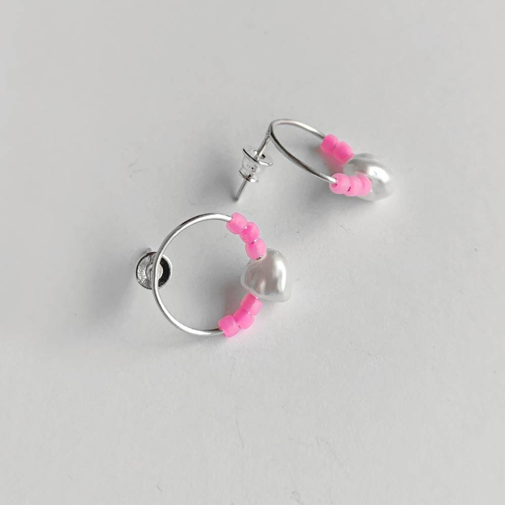 Oryginalność i prostota. OKRĄG ? kształt doskonały. Kolekcję cechuje elegancja i prostota jak również ekstrawagancja i indywidualizm. Kolczyki na sztyftach wykonane są z ? srebro, perła hodowlana ? 0,8 cm, koraliki szklane Srebro ? zmatowione. Szerokość ok. 1,5 cm.