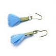 PIÓRKO - stylowy dodatek. Połączenie lekkości piórka i trwałości metalu. Metal niezwykle kontrastuje z naturalnym barwionym puchem. Kolczyki wykonane są z mosiądzu, naturalnie barwione pióra. Mosiądz - zmatowiony. Bigle otwarte - srebro pr.925,pozłacane. Długość z biglami - 7,5 cm. Szerokość - 3 cm. Waga - ok. 2,5 g.