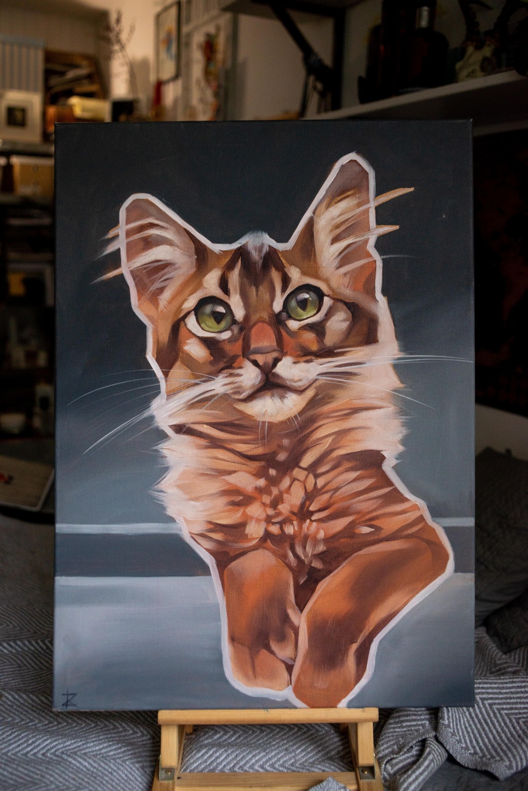 Portret Rudego kota namalowany na płótnie farbami olejnymi