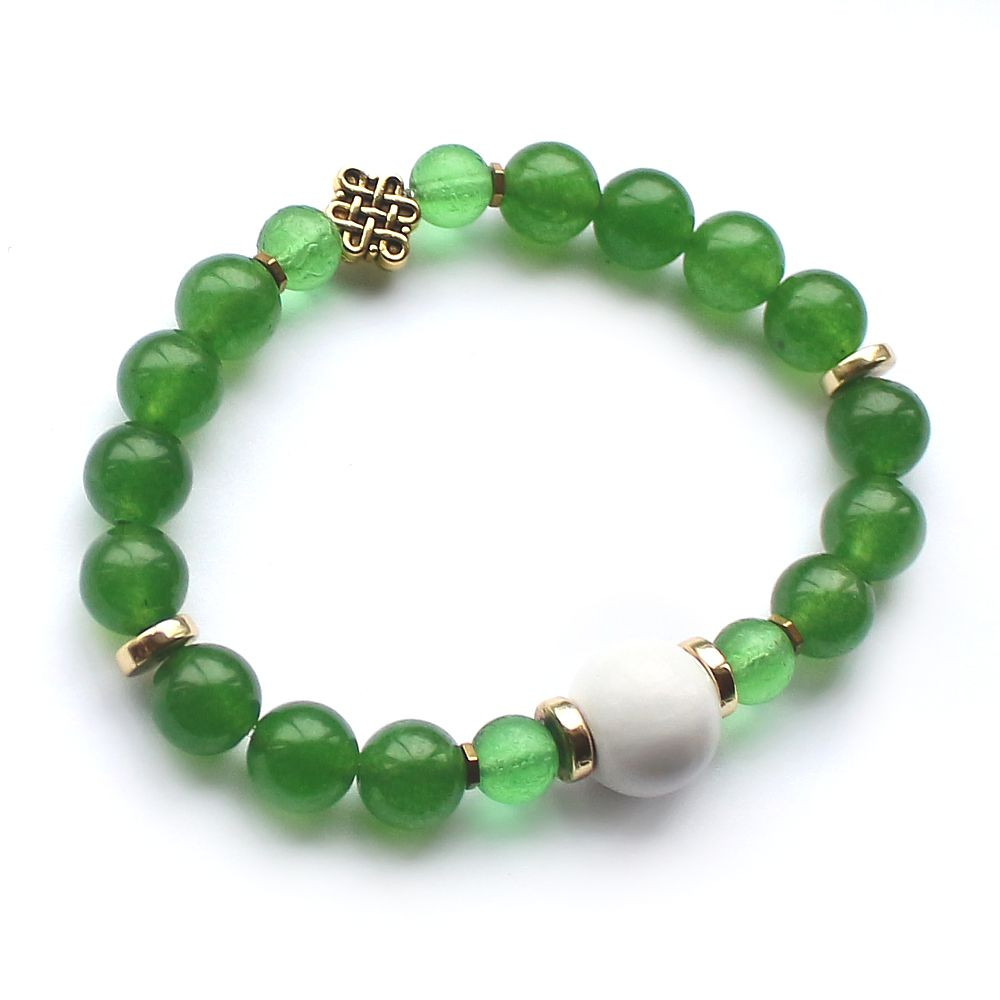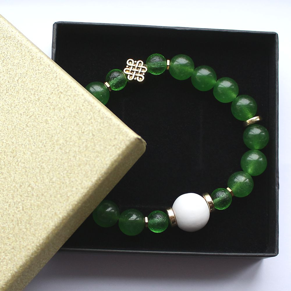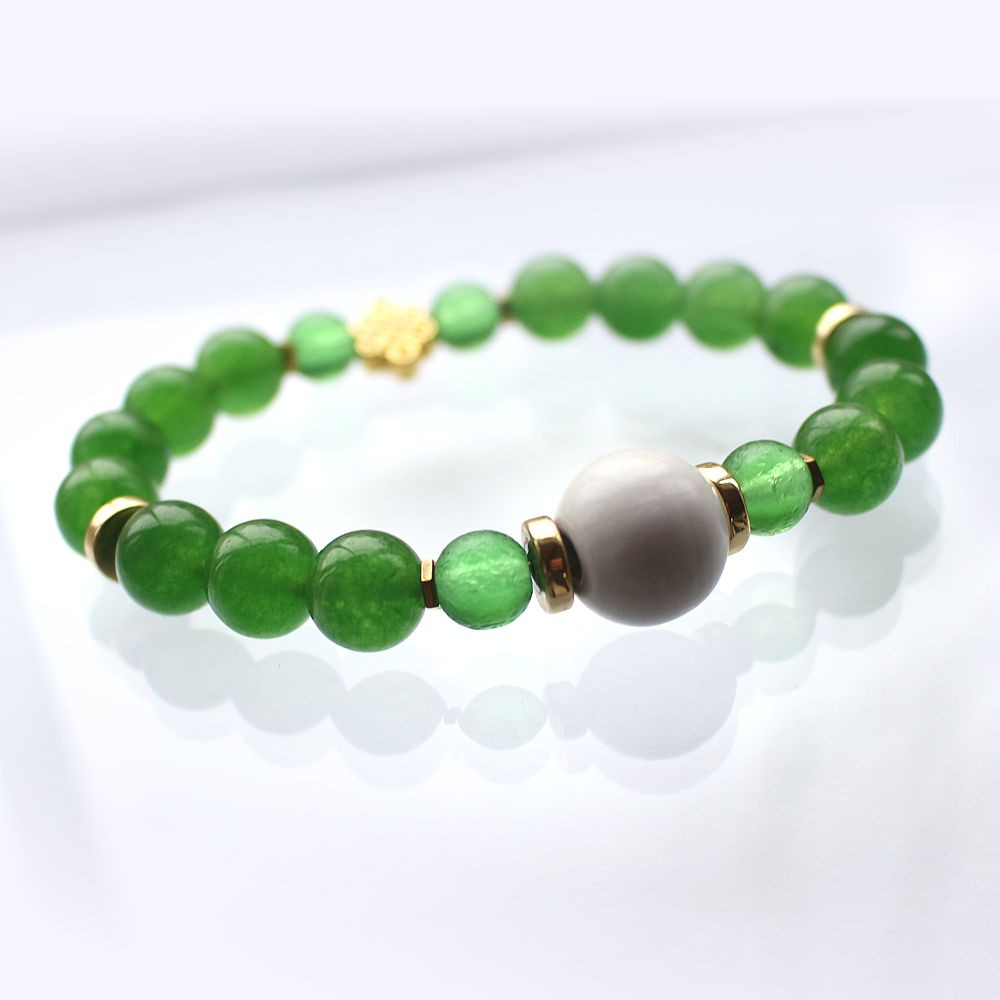 Jadeit zielony to uniwersalny kamień dostatku. Jeden z najmocniejszych kamieni na finanse. Wspiera spokój, mądrość i równowagę. Przyciąga powodzenie i lojalność, wytrwałość w dążeniu do celu i wiarę w siebie. Przywraca równowagę pomiędzy ciałem fizycznym i ciałami eterycznymi.