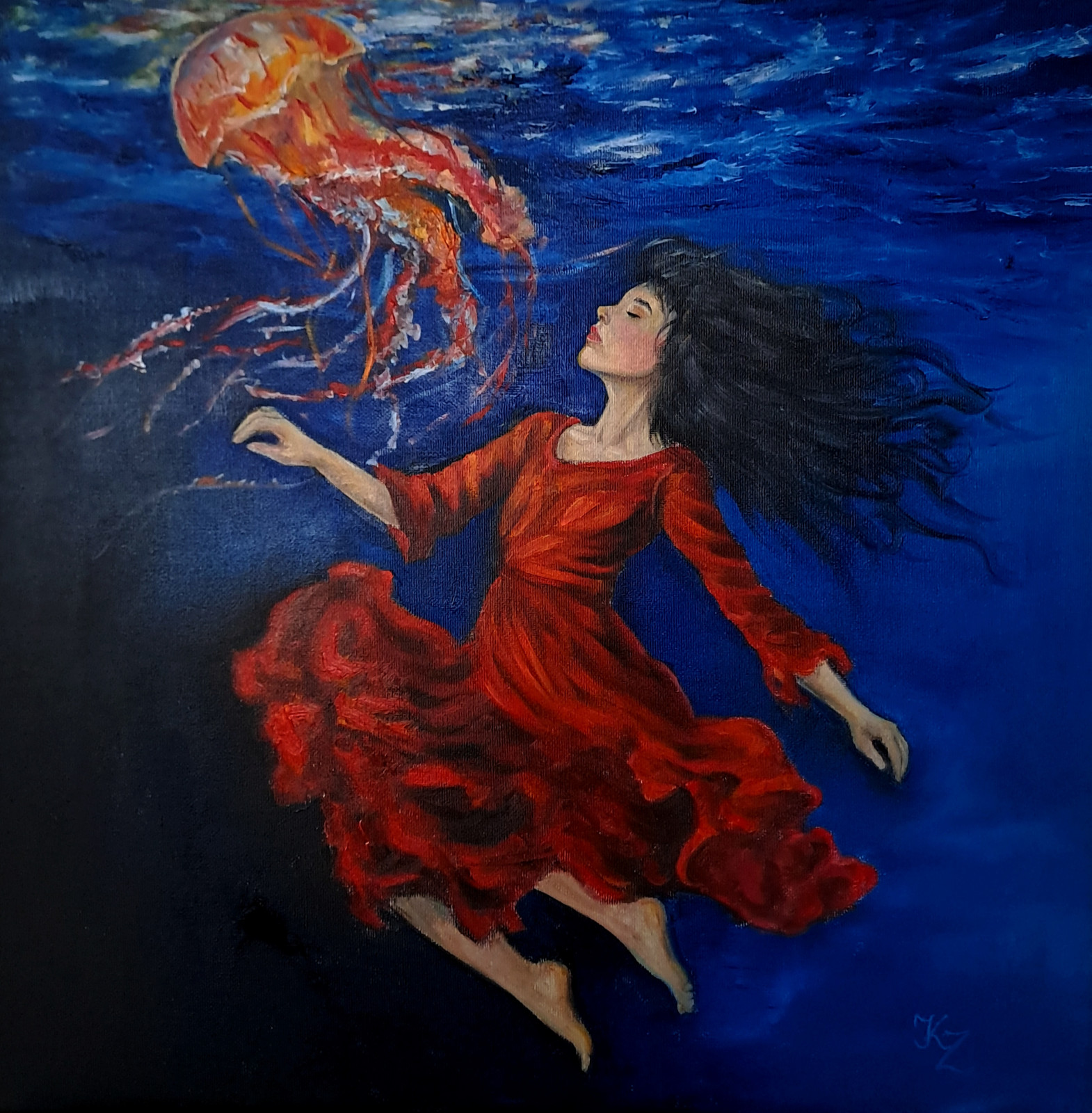 Spotkanie w głębinach, obraz olejny, malarstwo